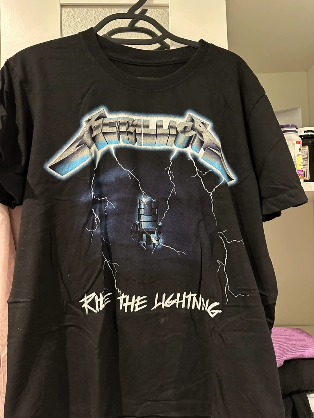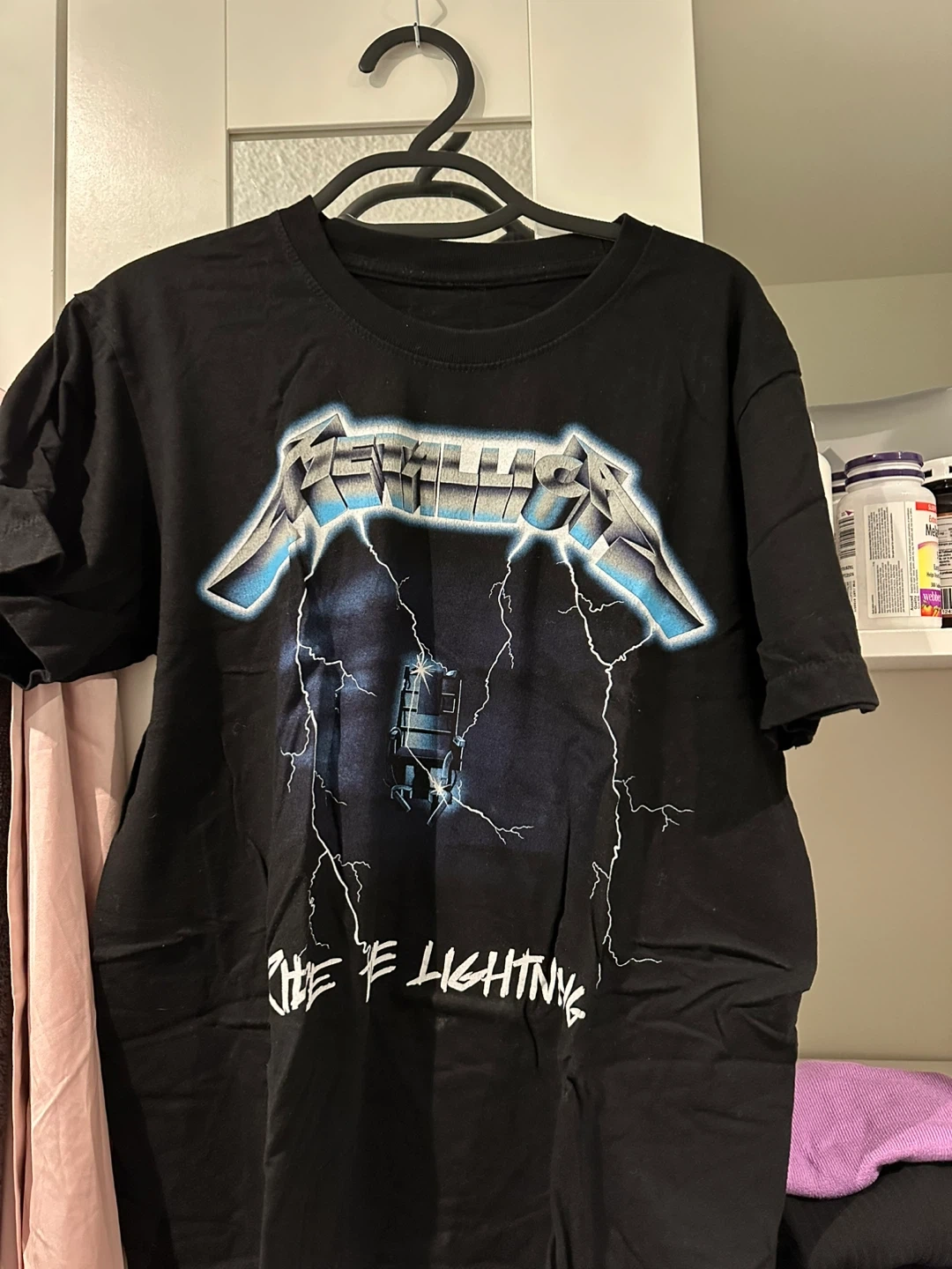 Selling a black Metallica t-shirt featuring the 'Ride The Lightning' album art. It's in great condition and ready for a new home! Perfect for any Metallica fan