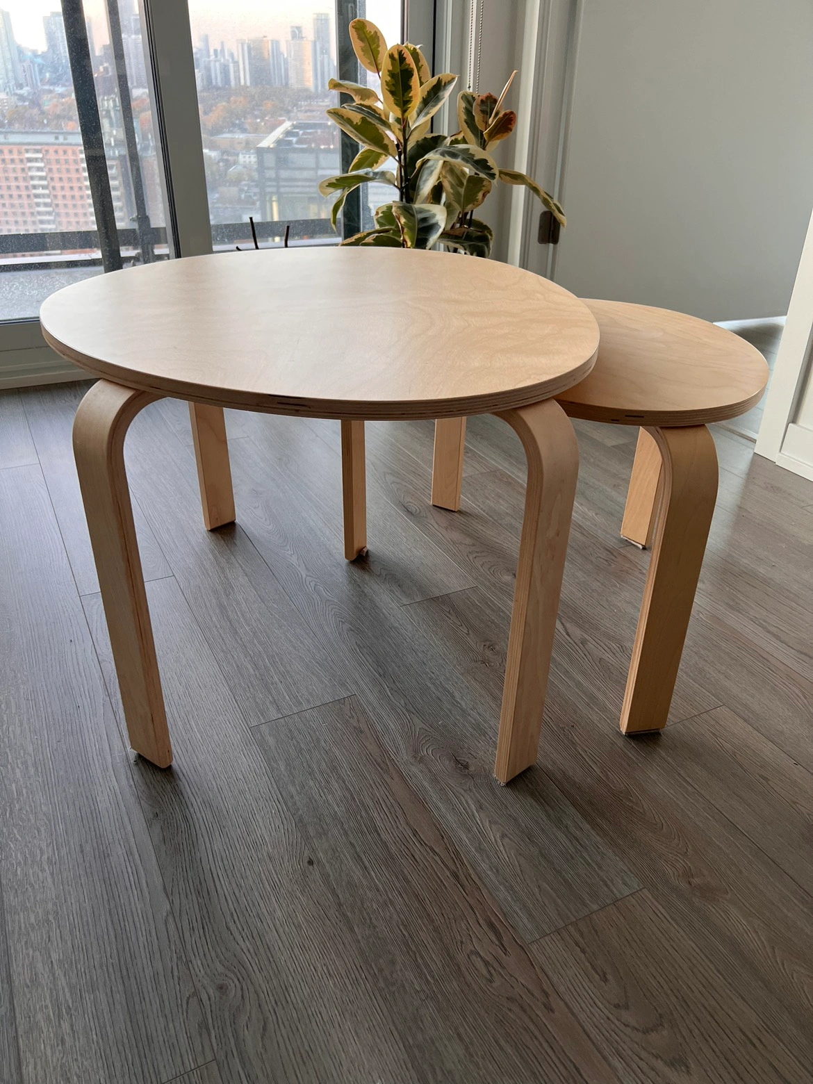 Nest of tables, set of 2, birch veneer
