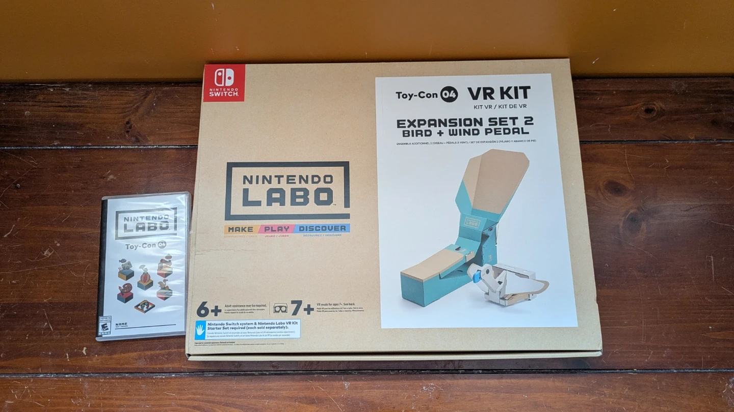 This is the Nintendo Labo Toy-Con 04 VR Kit Expansion Set 2, including the Bird and Wind Pedal. It's an expansion for the Nintendo Switch VR Kit. Requires the Nintendo Switch system and the VR Kit set to use. All components are made of cardboard.