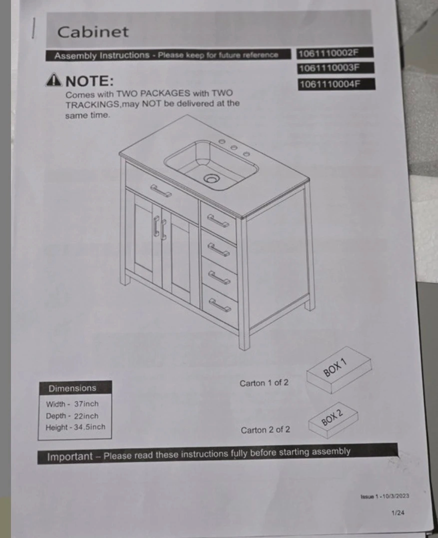 240packaging - Dimensions: 37 inches (width) x 22 inches (depth) x 34.5 inches (height)