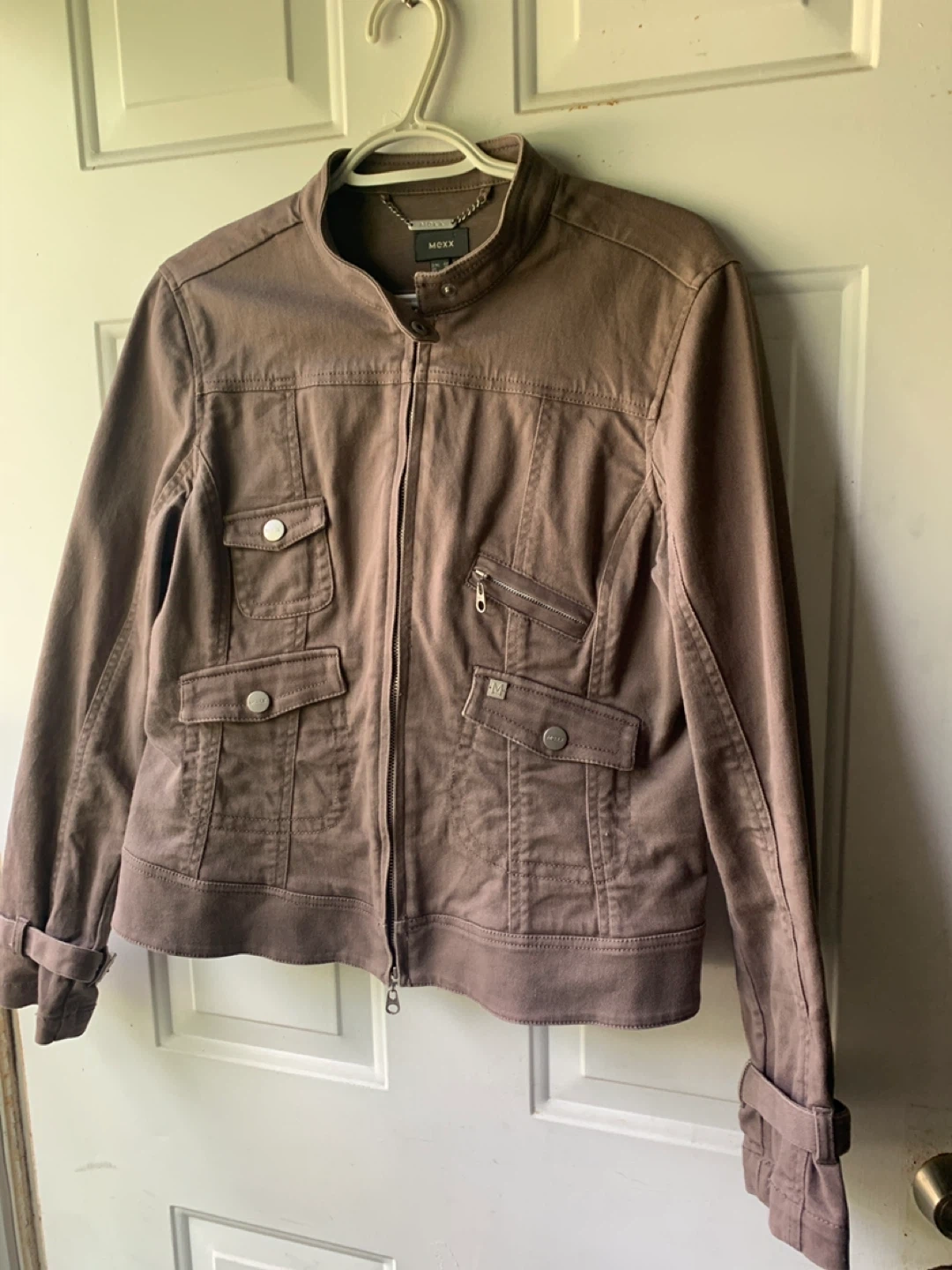 A stylish Mexx jacket in a lovely brown colour! It has a unique design with multiple pockets and a comfortable fit. It's in great condition, like new and ready for a new home.