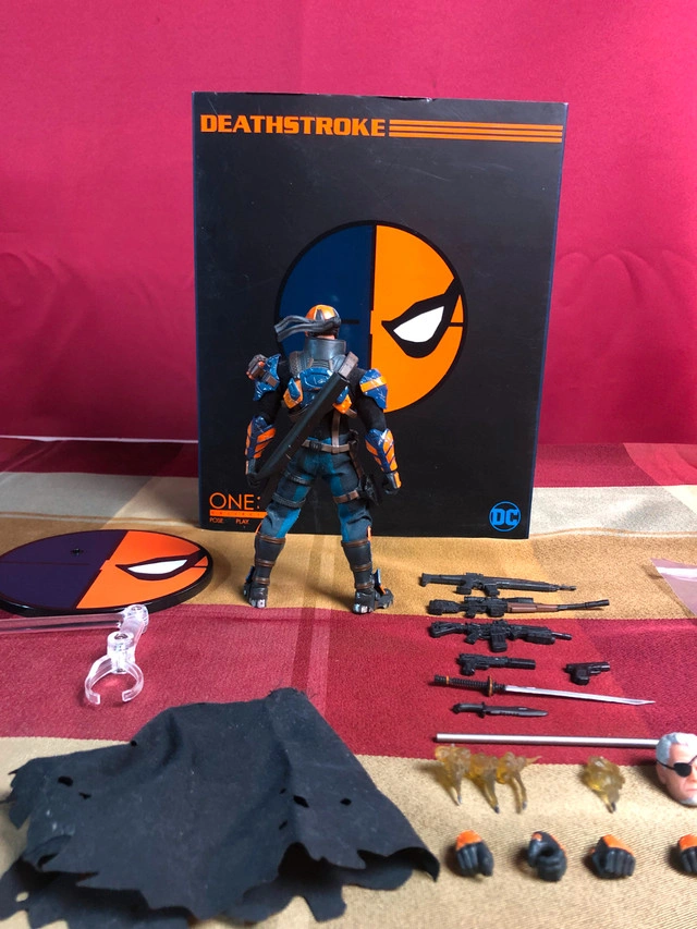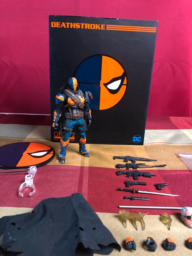 15Hello, I am selling an open box Mezco Death Stroke (modified with extras) from my collection. It is complete, there are no damages. $250 for the figure. I am flexible in price and open to and encourage buying multiple items for increased savings. I am not looking for any trades currently, please inquire if you have questions and or want further details. Note: what you see in the pictures is what you get.