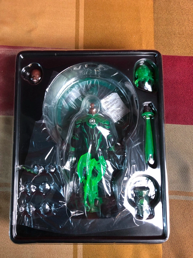 15Selling an open box Mezco Green Lantern (John Stewart) from my collection. It is complete, there are no damages, battery and light functions work. Note: This figure has been modified to increase the size, arms and legs have been changed and suit restitched (see pictures). No additional head sculpt included. I am flexible in price and open to and encourage buying multiple items for increased savings. I am not looking for any trades currently please inquire if you have questions and or want further details Note: what you see in the pictures is what you get