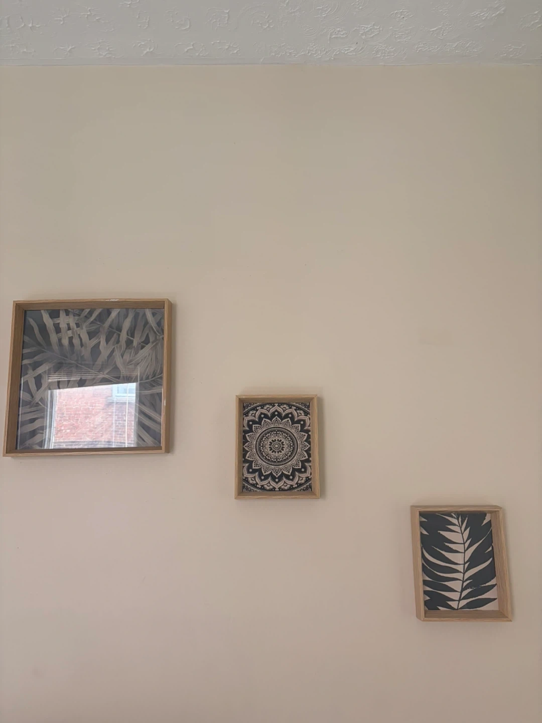 This set includes three framed art prints with botanical and mandala designs. They're enclosed in light wood frames. These pieces add a touch of nature-inspired decor to your space.