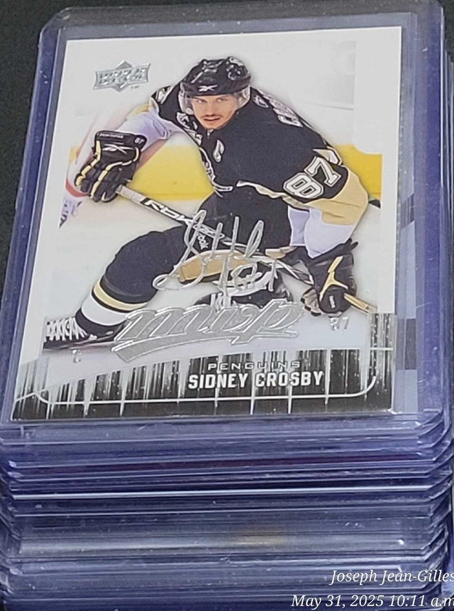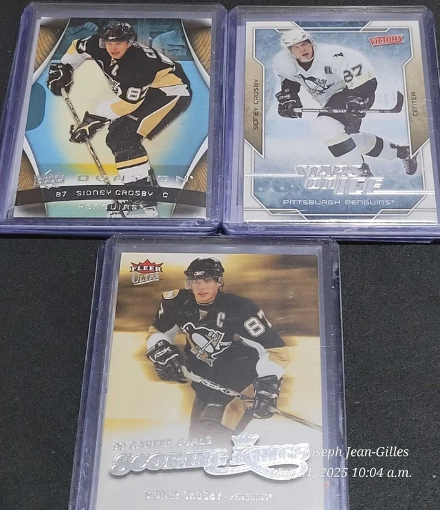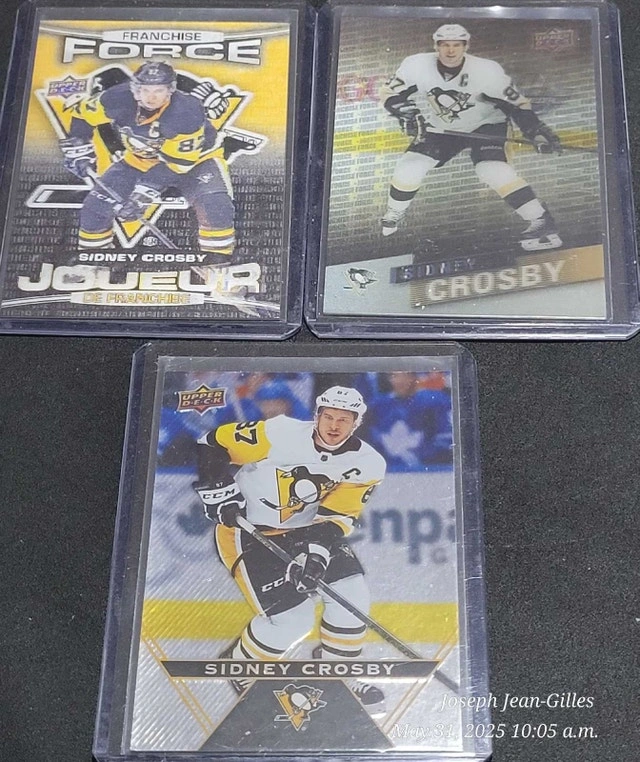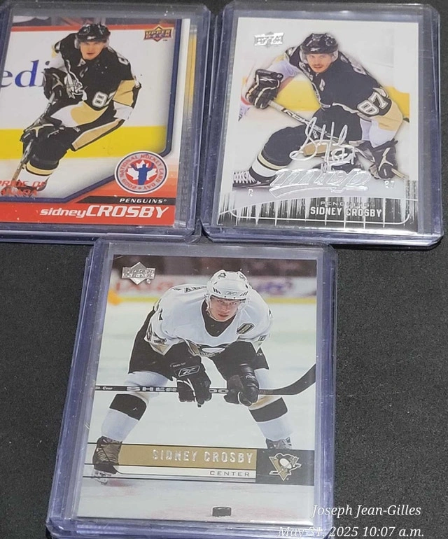 Buy & SellSidney Crosby Hockey Cards LotSidney Crosby Hockey Cards Lot$2520 Sidney Crosby cards from the Pittsburgh Penguins. All cards are in very good condition and well protected. See pictures for details.WHERE TO MEETCheck LocationView MapSELLERverifiedJosephMaple711 review0 chats·0 favorites·2 viewsSEND CHAT TO SELLERHi Joseph! I’m interested in your listing.Hi Joseph! I’m interested in your listing.Get the Karrot app to chatSign In to chat