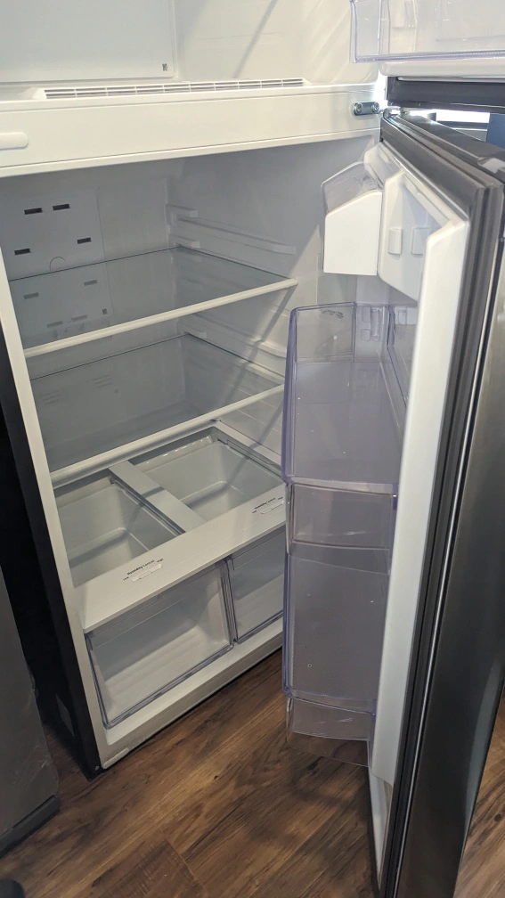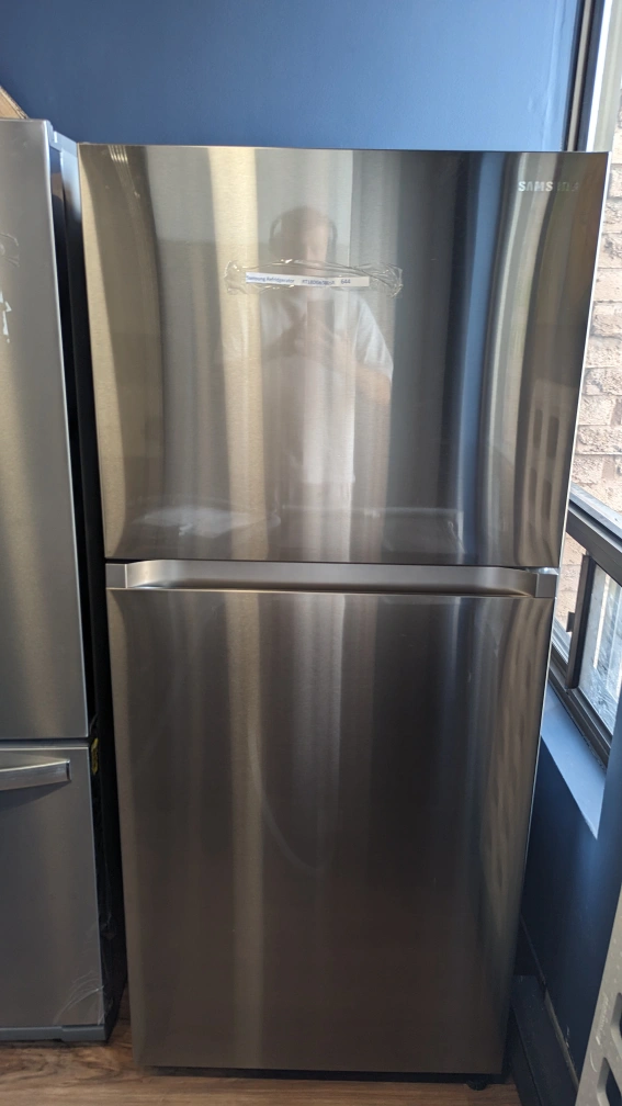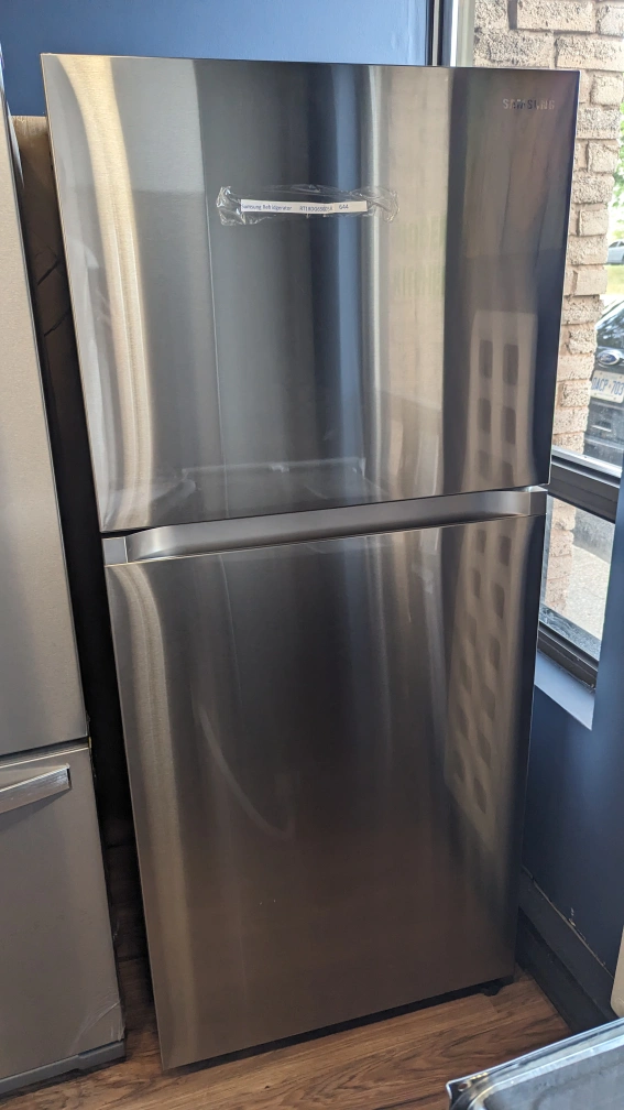 Selling a Samsung refrigerator with a bottom freezer. It's in great condition and ready for a new home. The fridge features a sleek stainless steel finish that will look great in any kitchen
