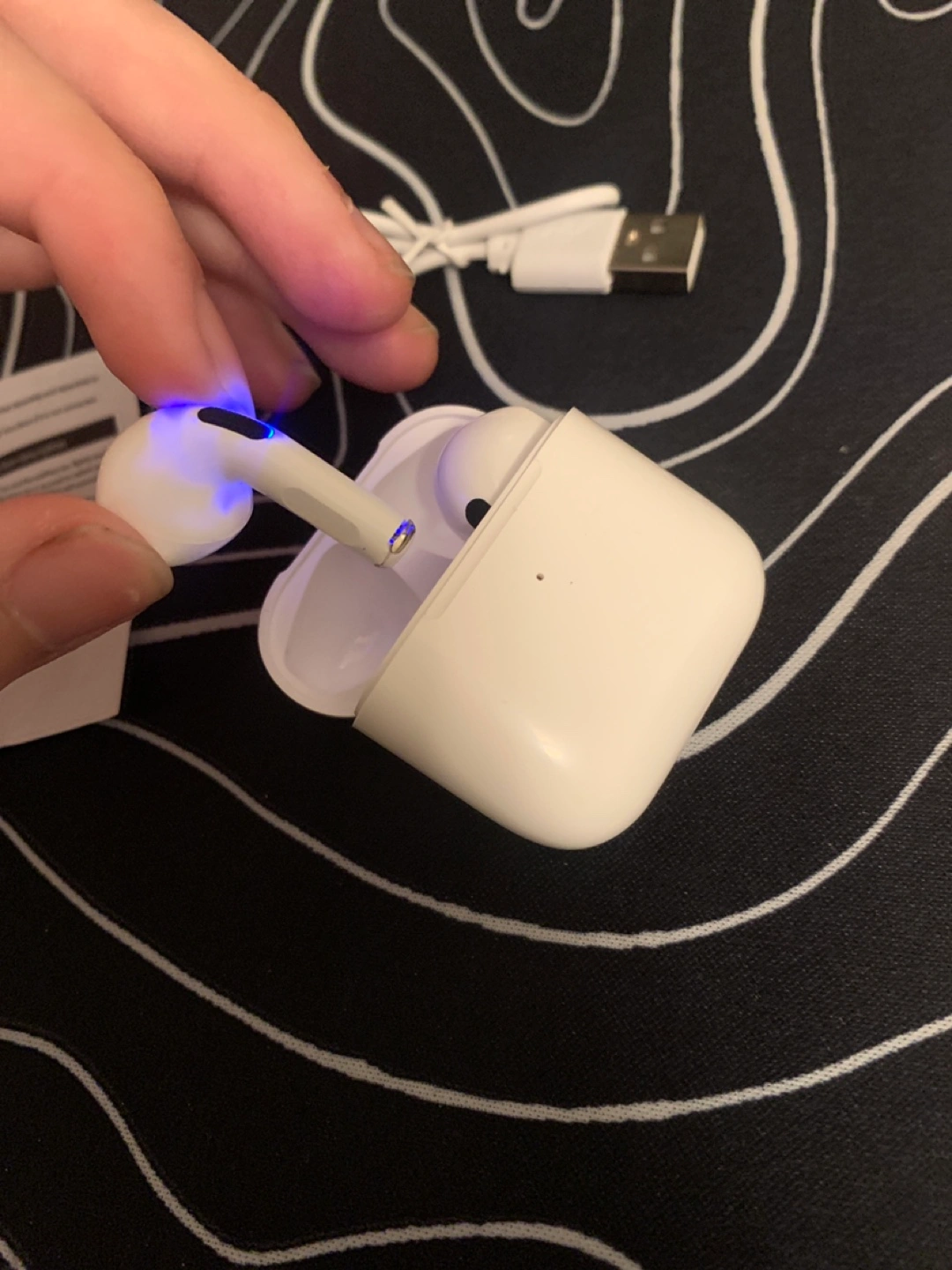 White wireless earbuds. Includes charging case and USB charging cable. Instructions included. brand new