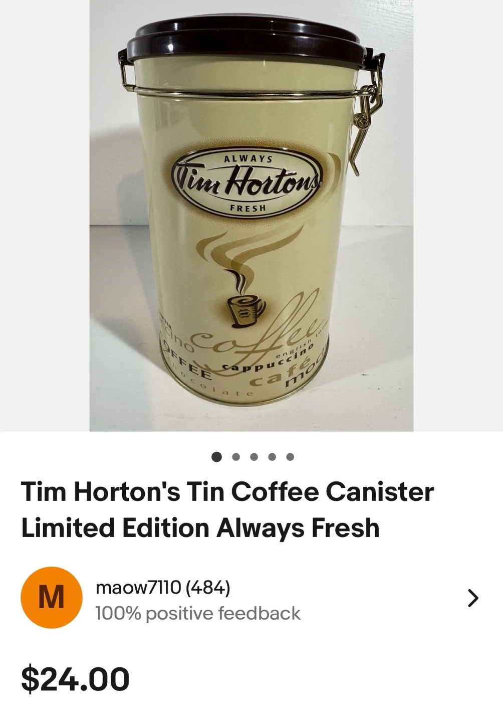 $15 Vintage (2001) Tim Hortons limited edition coffee tin #001 with locking latch.