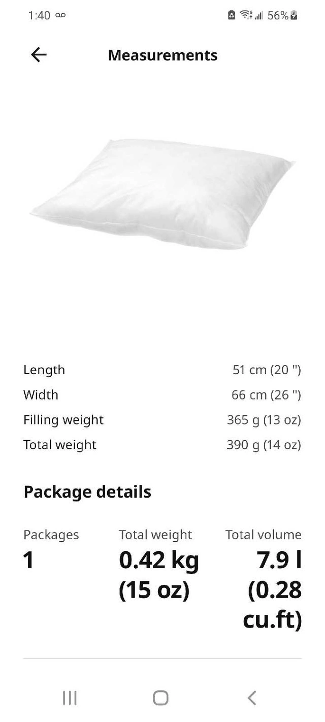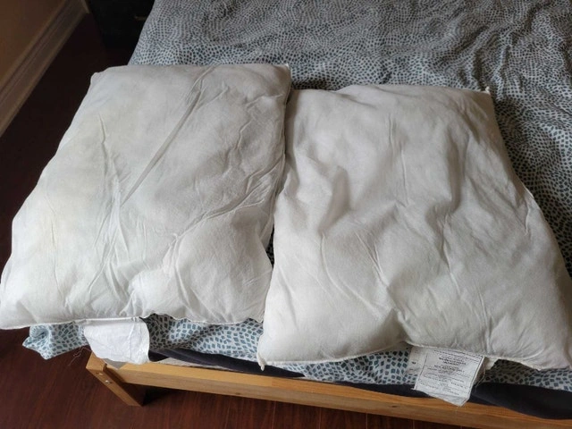 Pillows for sale at $2 each. I believe I have 6 available. Dimensions: Length 51 cm (20"), Width 66 cm (26"). Condition is used - fair. Cash accepted.