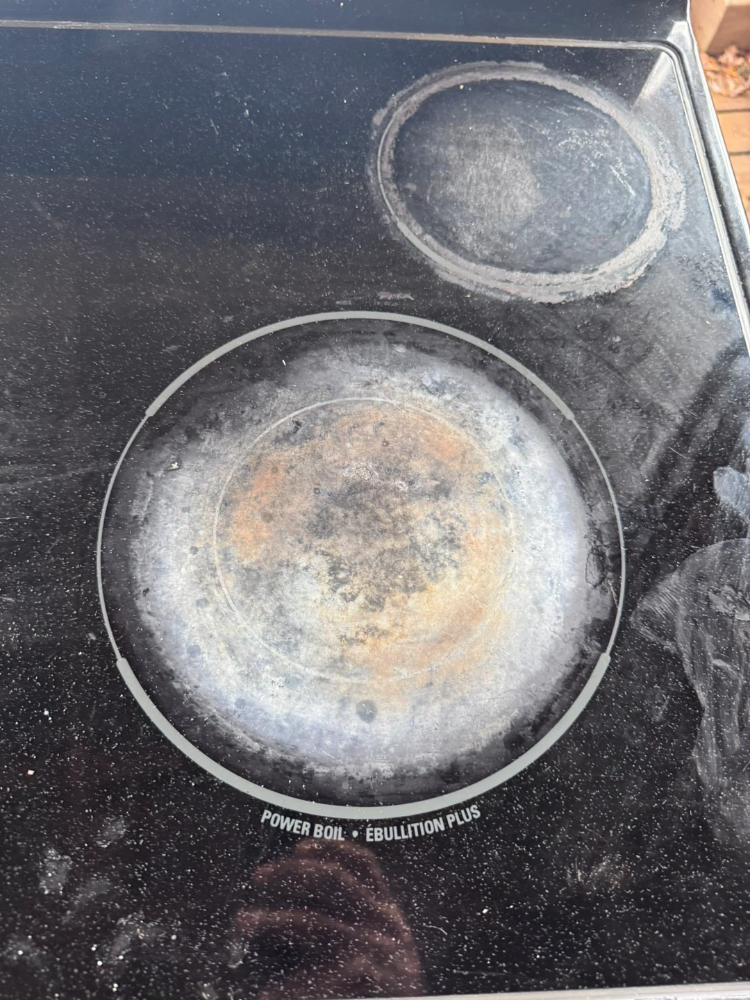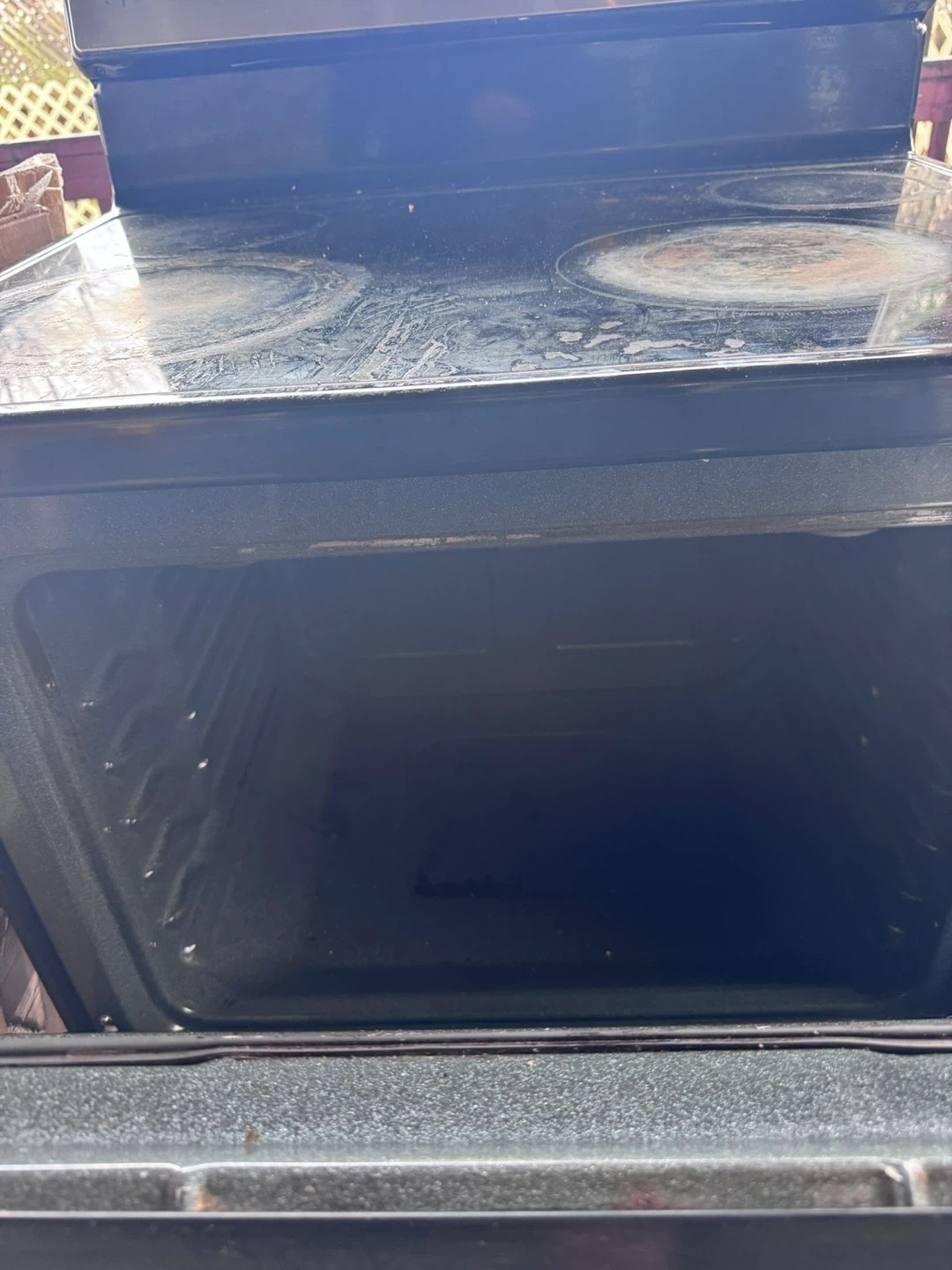 Black electric range with four coil burners one needs replacing. Features a glass cooktop and an oven. Ideal for everyday cooking needs. $50