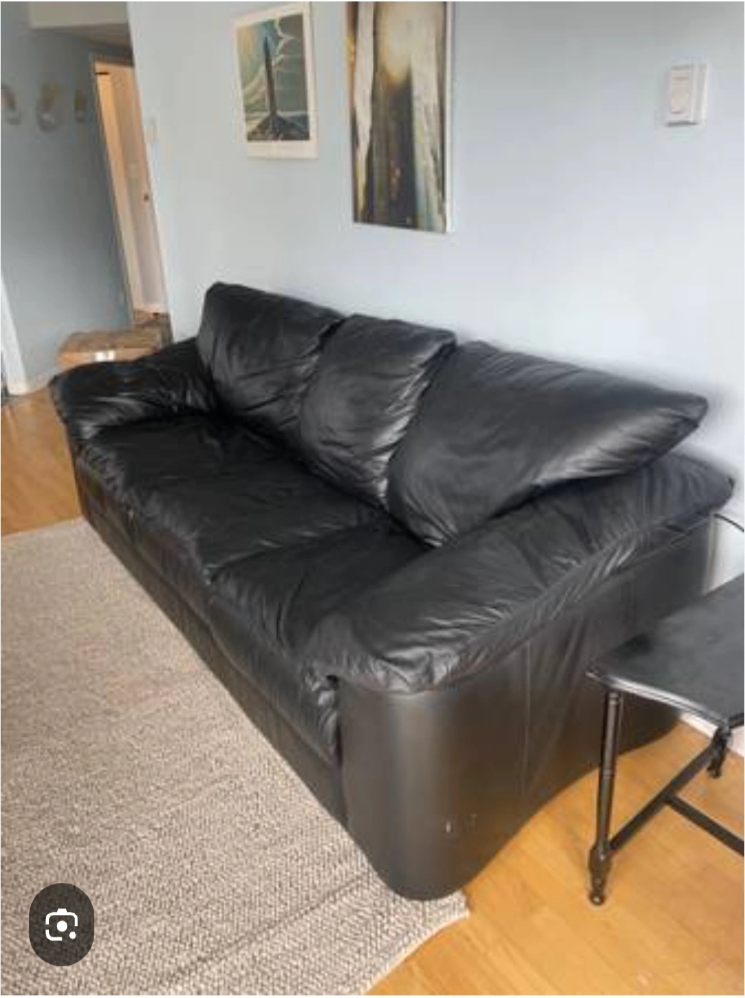 Selling a comfortable black leather sofa! It's a great piece for any living room and is in good condition. Dimensions: