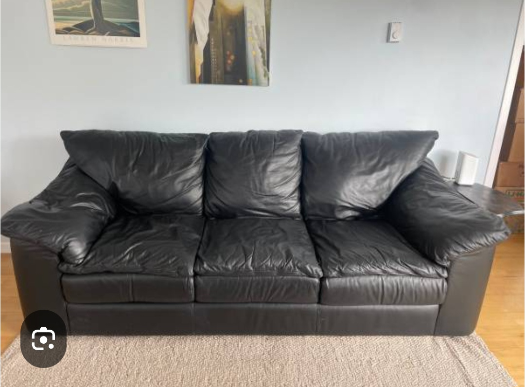 Selling a comfortable black leather sofa! It's a great piece for any living room and is in good condition. Dimensions: