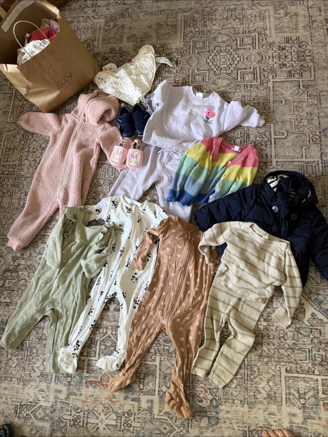 Selling a bundle of baby clothes in great condition! Includes items from Petit Lem, Stonz, Zara, Gap kids. There are sleepers, shoes, a sweatshirt and pants set, and a jacket. Perfect for a growing little one! Includes more items not pictured.