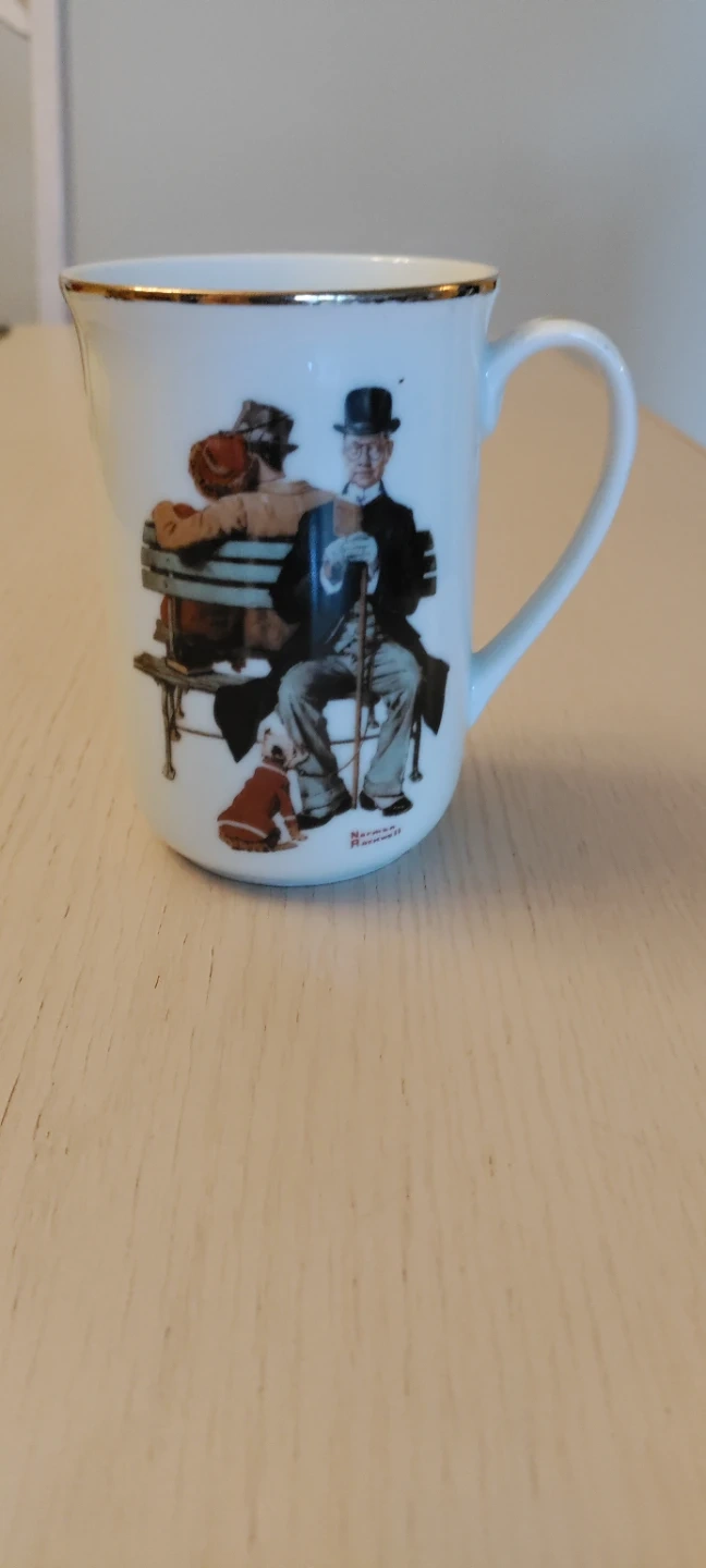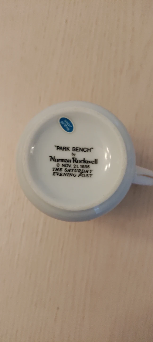 This mug features Norman Rockwell's "Park Bench" illustration, originally published on Nov. 21, 1936. It's a charming piece for any collector. Made with durable ceramic. Great for enjoying your morning coffee or tea!