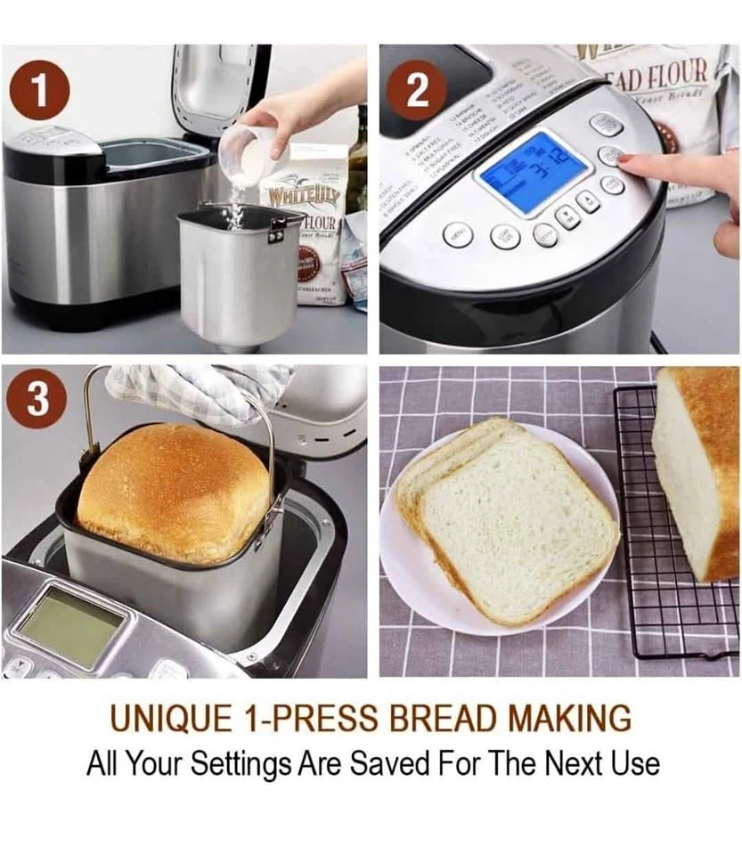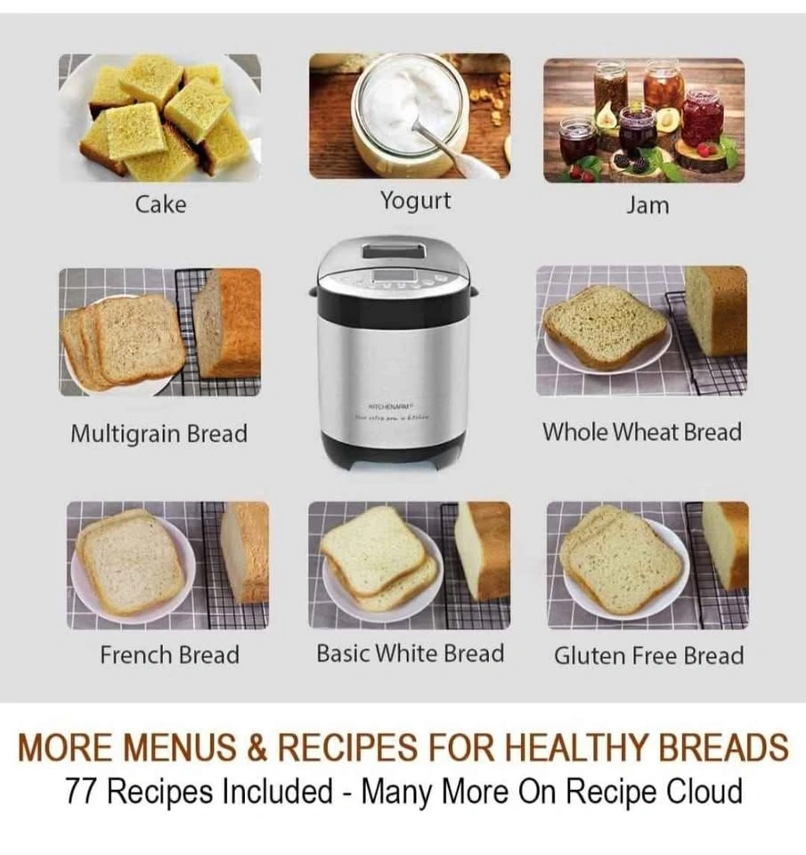 Brand new KITCHENARM 29-in-1 SMART Bread Machine with Gluten Free Setting. Makes 2LB, 1.5LB, and 1LB loaves. Features a homemade cycle and comes in stainless steel. Includes recipes. Feel free to message if you have any questions!