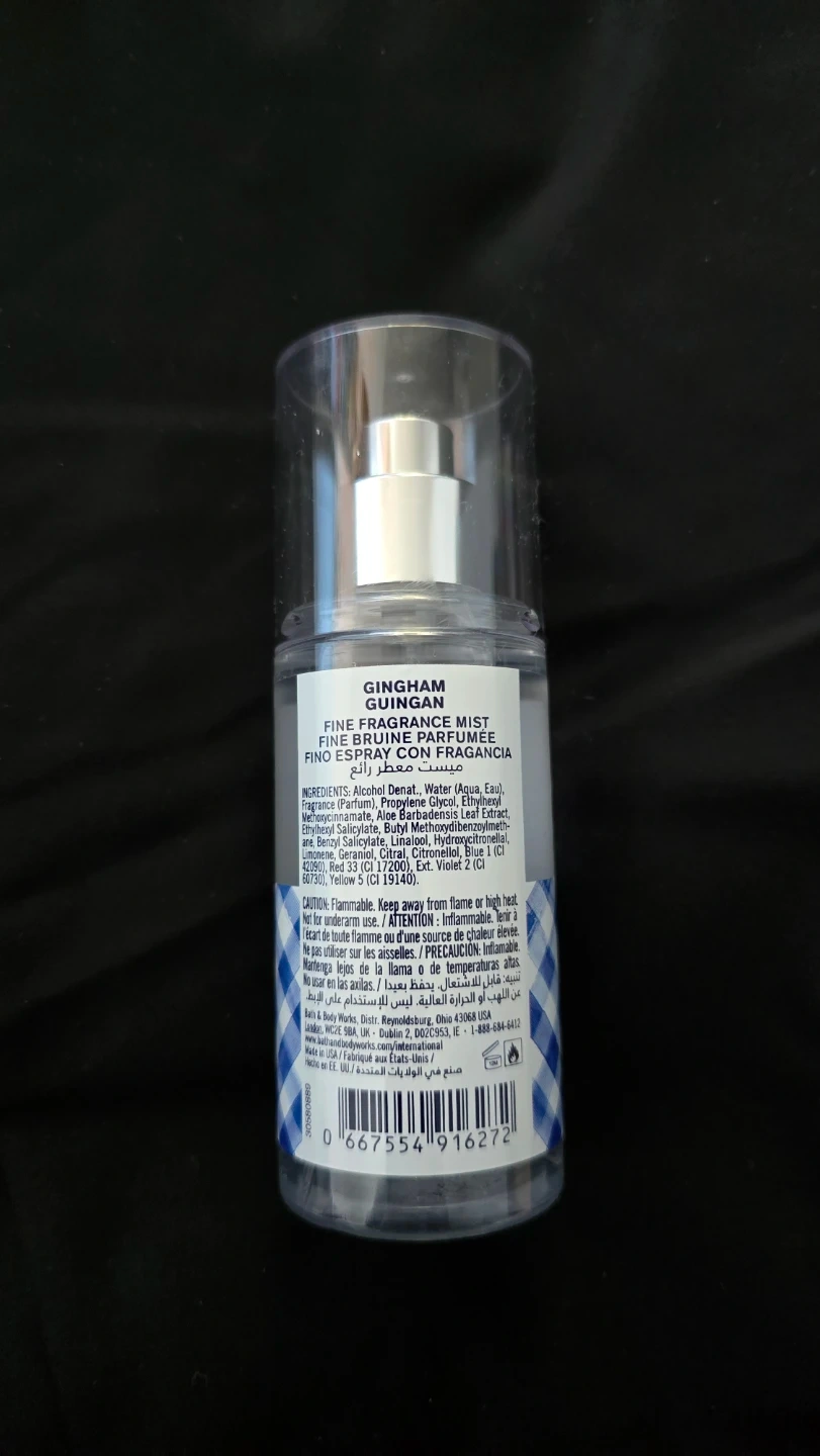 Gingham fine fragrance mist by Bath & Body Works. Comes in a 75 ml (2.5 fl oz) spray bottle. Use this mist for a light, refreshing scent.