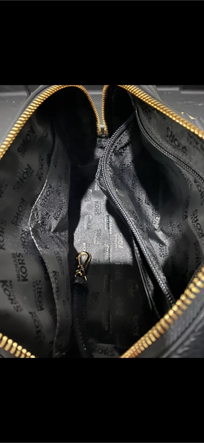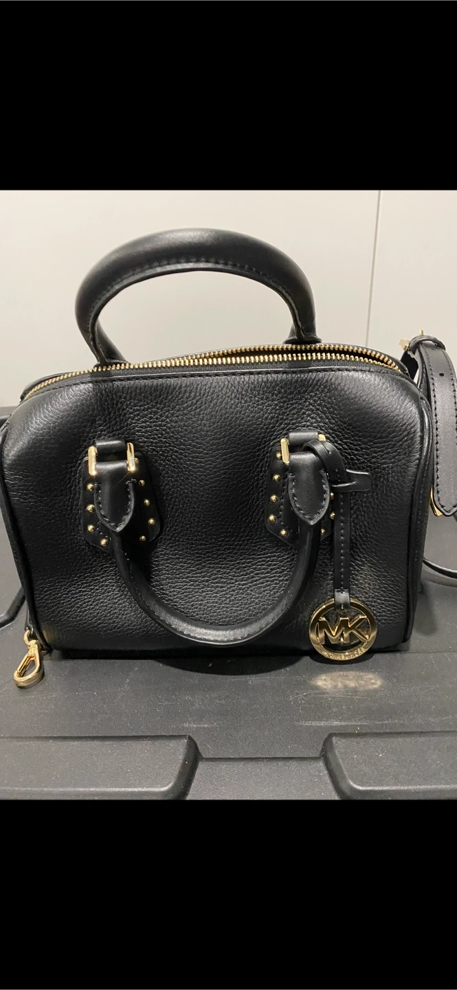 Selling a gently used Michael Kors black leather satchel. It's in great condition and perfect for everyday use! The bag features gold-tone hardware and a spacious interior.