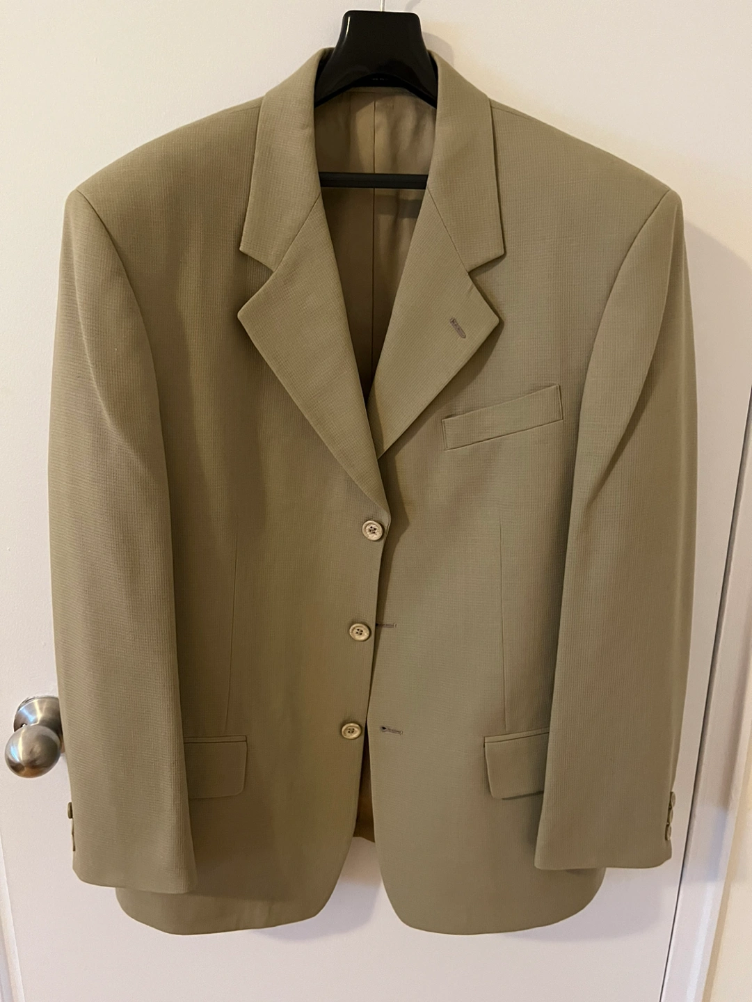 Size 42 virgin wool suit jacket for men (or oversized look on women). Made in Canada.