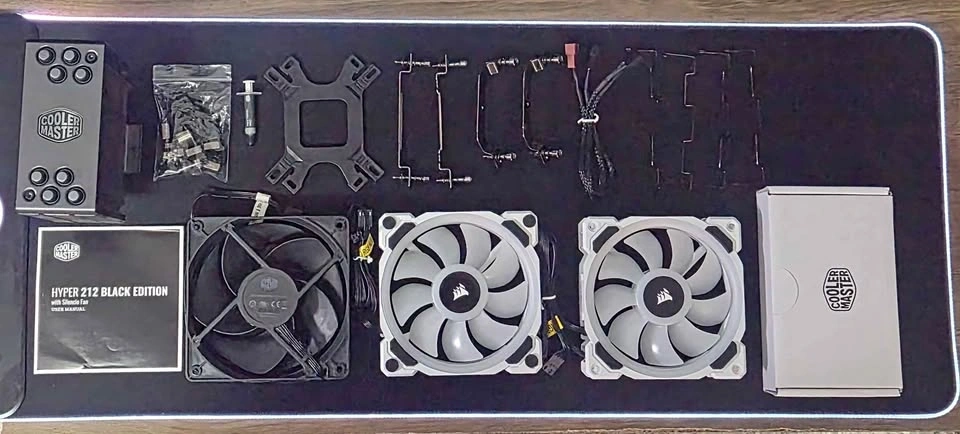 Selling a Cooler Master Hyper 212 Black Edition in excellent condition. Removed from my PC in perfect working order. Includes all original mounting hardware (nothing missing). Also available: Corsair LL120 RGB 120mm Fans (White) with Corsair RGB Hub. Fully functional, great RGB lighting. Cooler: $30. Corsair fans + hub: $40. Bundle: $60 for everything. Clean, well-maintained, ready to install. Pick up Markham and Sheppard. Let me know if you're interested!