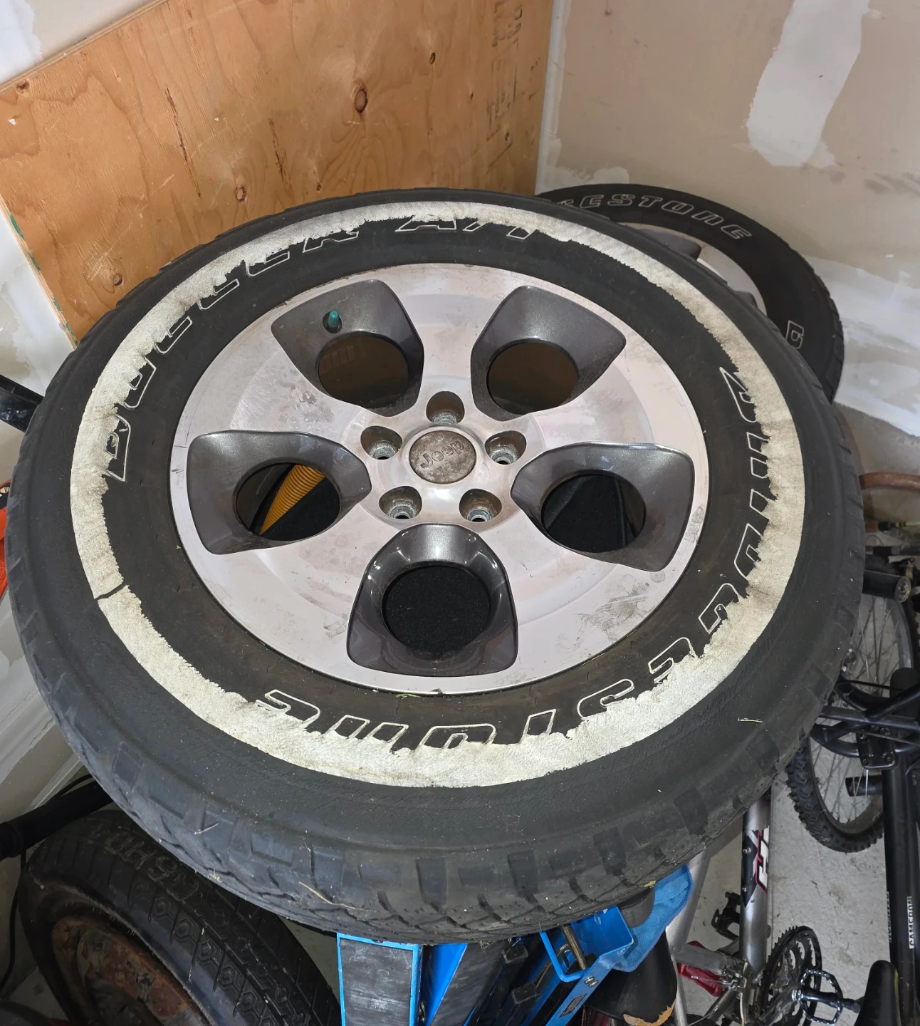 Looking to sell all have great tred one has sidewall marks but all hold air.selling rims and tires will not sell rims with out tires Looking for $500 OBO