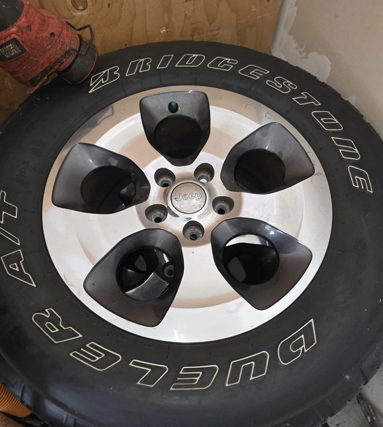 Set of Bridgestone Dueler A/T tires. Tire size is P255/70R18.will fit jeeps from 2017 through 2024 These are M+S rated tires.