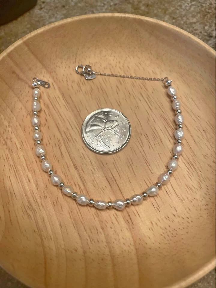There are 19 sterling silver beads and 20 freshwater pearls. The clasp is extendable and sterling silver. Length: 17cm to 20cm. Pickup location Marpole Vancouver