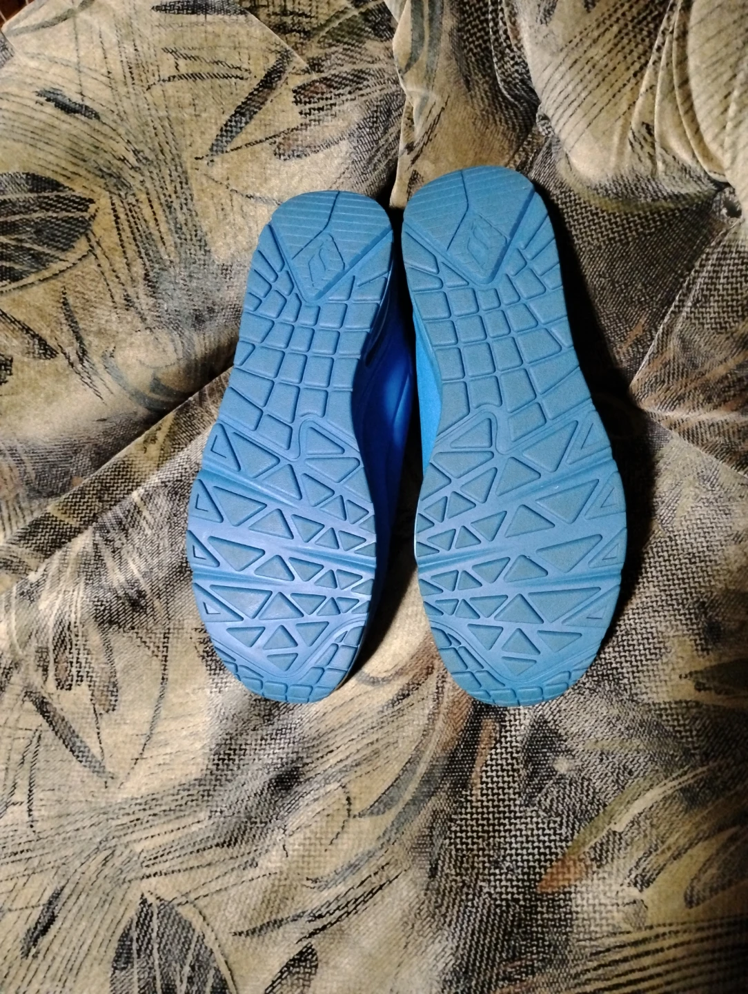 These bright blue Skechers athletic shoes feature air-cooled memory foam insoles for comfort. The rubber soles offer good traction. They're great for everyday wear or light activity.