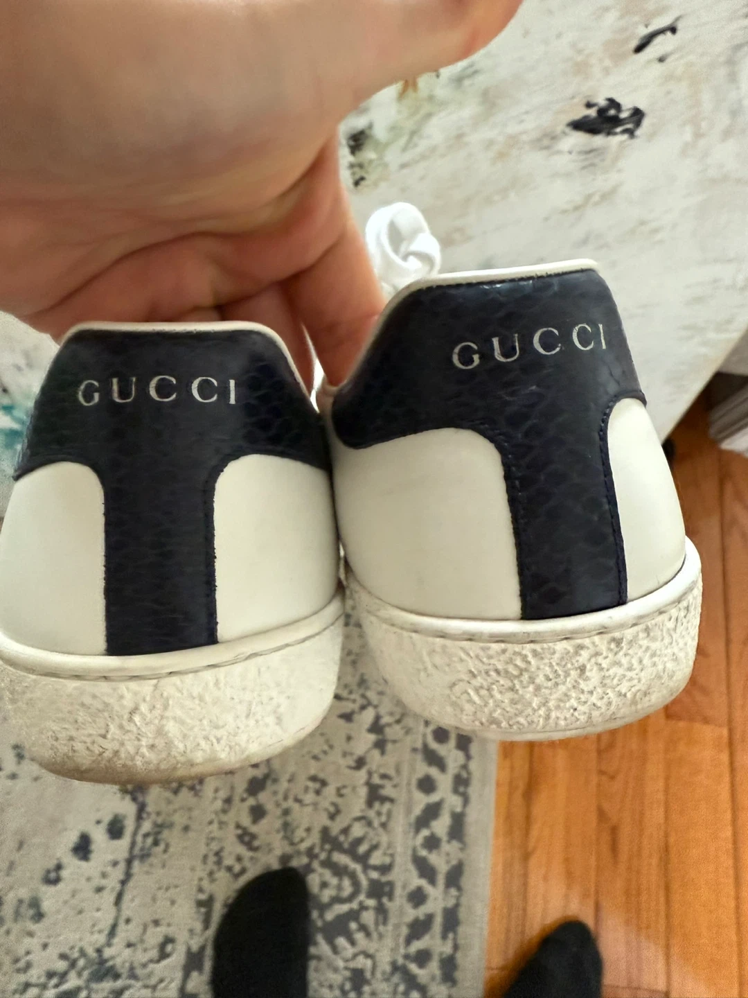 Gucci White Leather Sneakers with Red and Blue Stripes