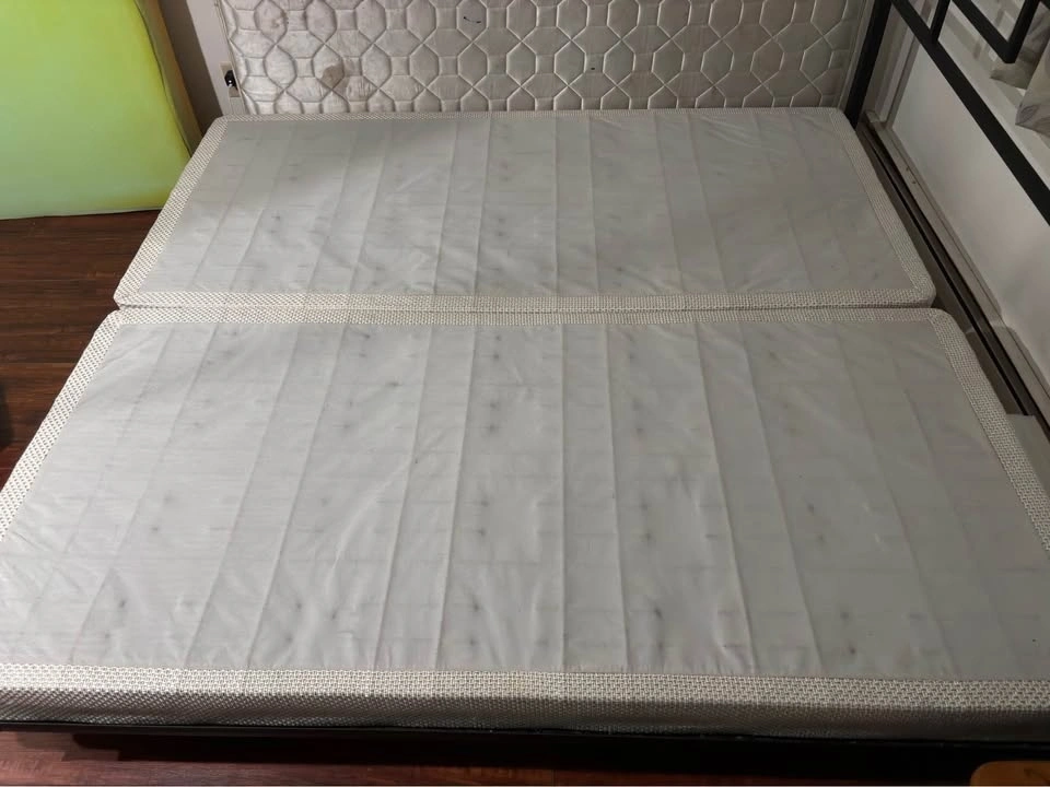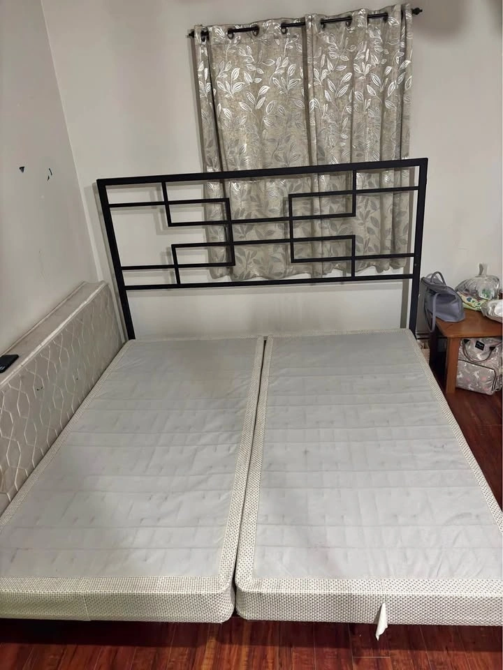 King size headboard metal bed frame. Two box springs. It can be detached, easy to transport. Cash preferred. Smoke and pet free zone.