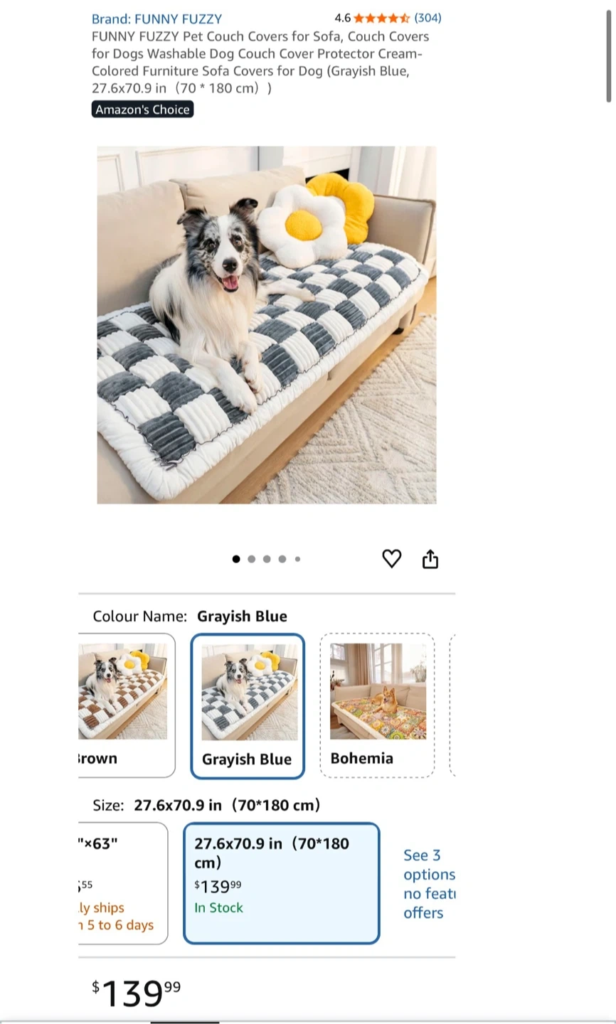 Looking to add some comfort and protection to your sofa? This FUNNYFUZZY couch cover is perfect! It's in a stylish grayish blue colour and measures 27.6x70.9 inches (70*180 cm). It's designed to fit a 3-seater sofa and offers sofa protection. Originally bought for $139.99, this thick and comfy cover also features a non-slip bottom. Great for pet owners too!
