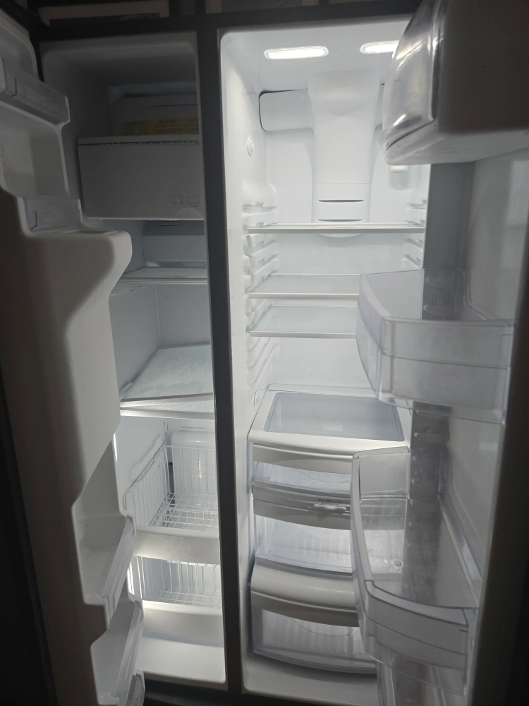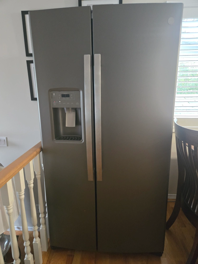 Selling a GE Appliances side-by-side refrigerator in good condition.