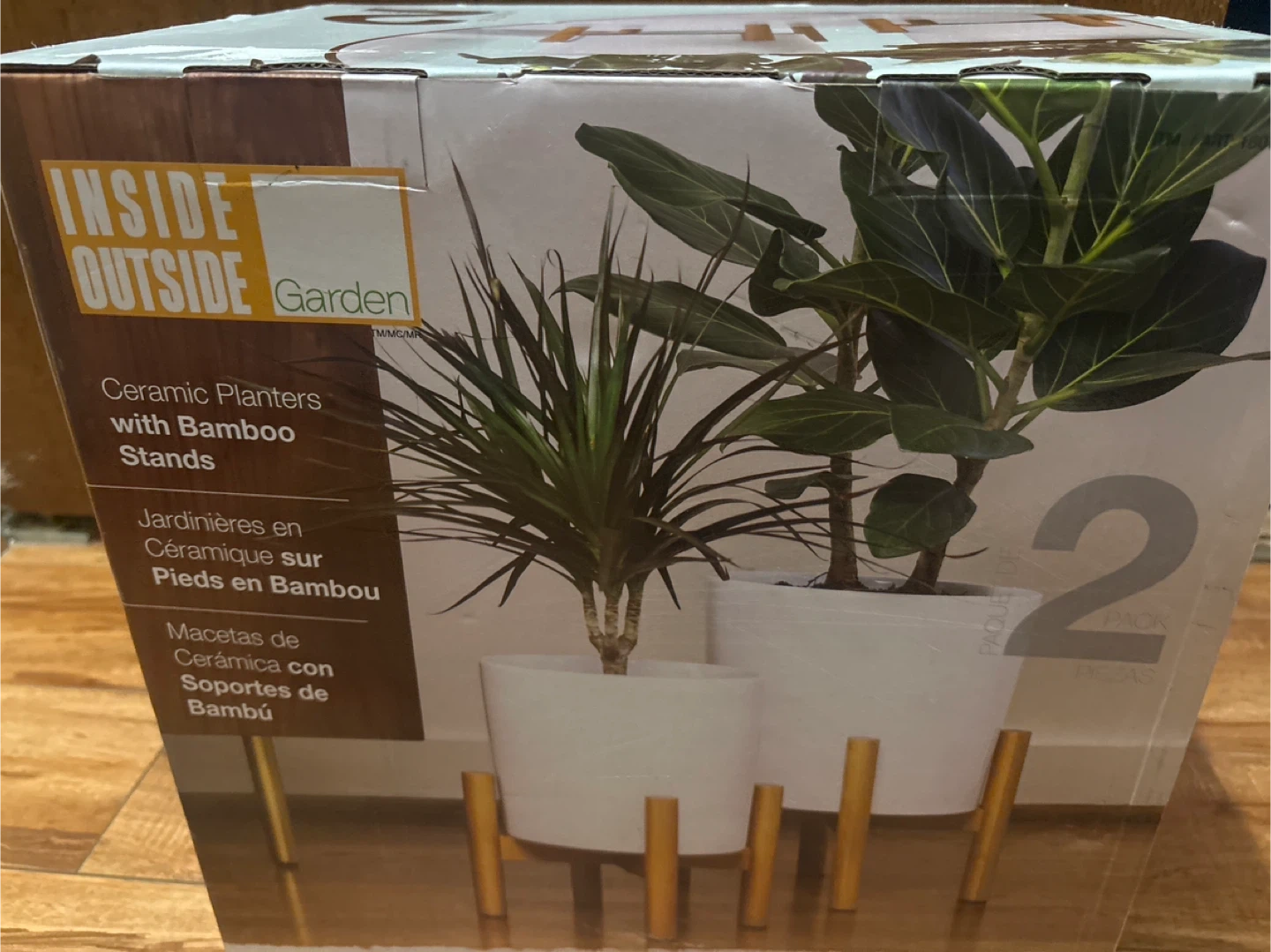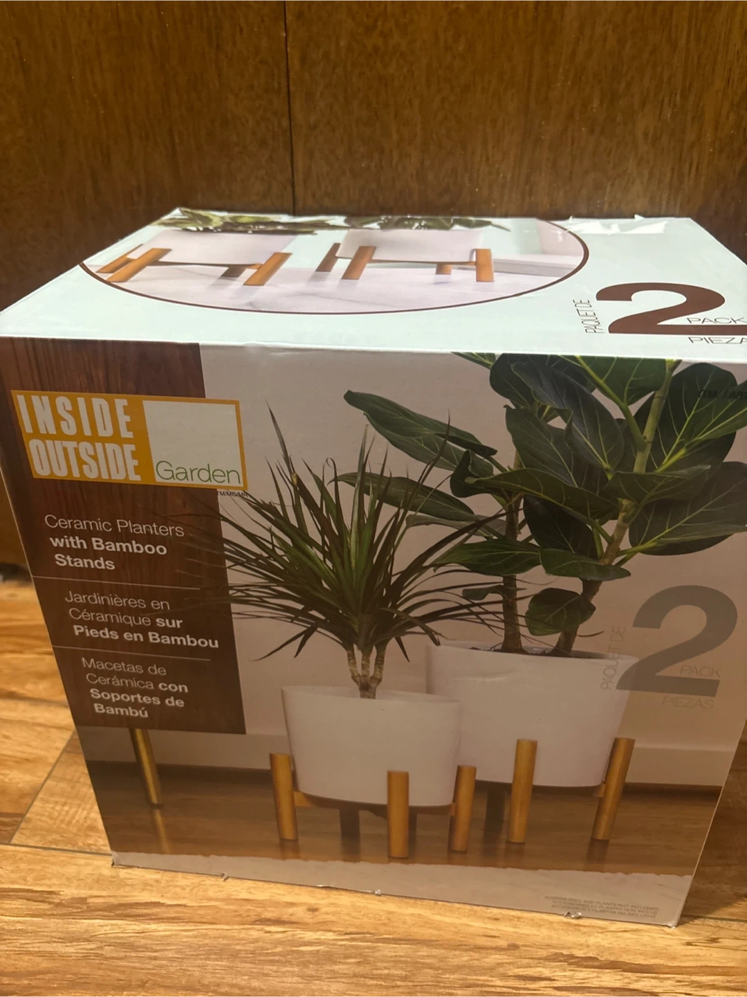 Unopened]new Garden Ceramic Planters w/ Bamboo Stands