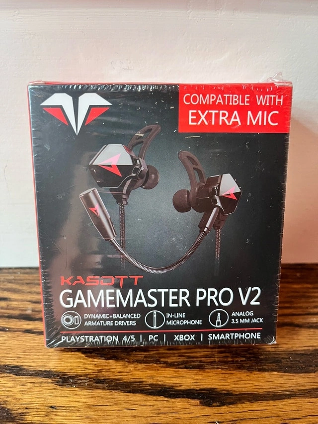 Experience immersive gaming with these new Kasott GameMaster Pro V2 headphones, boasting dynamic balanced armature drivers and an in-line microphone, compatible with Playstation 4/5, PC, Xbox, and smartphones, complete with an analog 3.5mm jack. Specifications: * Dynamic Balanced Armature Drivers * In-line Microphone * Analog 3.5mm Jack * Compatible with Playstation 4/5, PC, Xbox, Smartphone