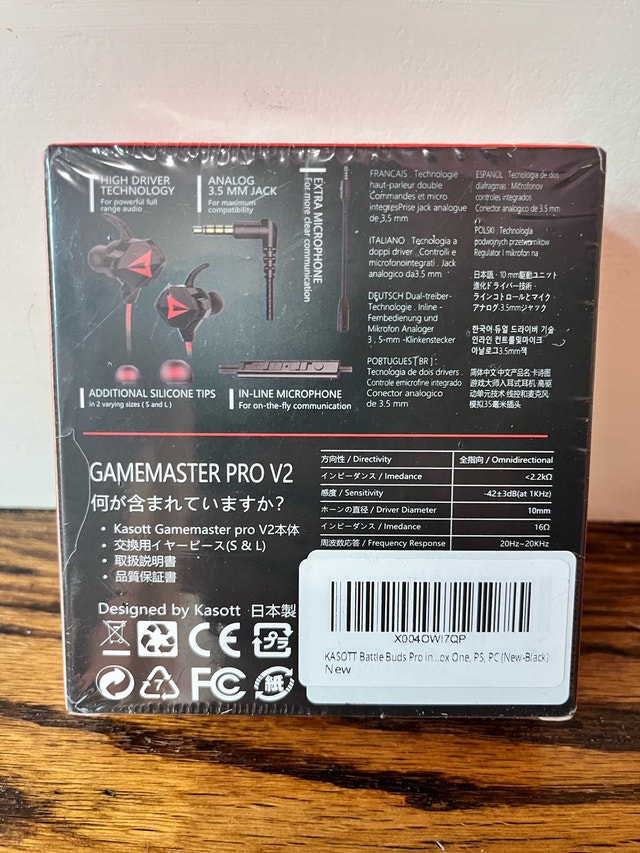 Experience immersive gaming with these new Kasott GameMaster Pro V2 headphones, boasting dynamic balanced armature drivers and an in-line microphone, compatible with Playstation 4/5, PC, Xbox, and smartphones, complete with an analog 3.5mm jack. Specifications: * Dynamic Balanced Armature Drivers * In-line Microphone * Analog 3.5mm Jack * Compatible with Playstation 4/5, PC, Xbox, Smartphone