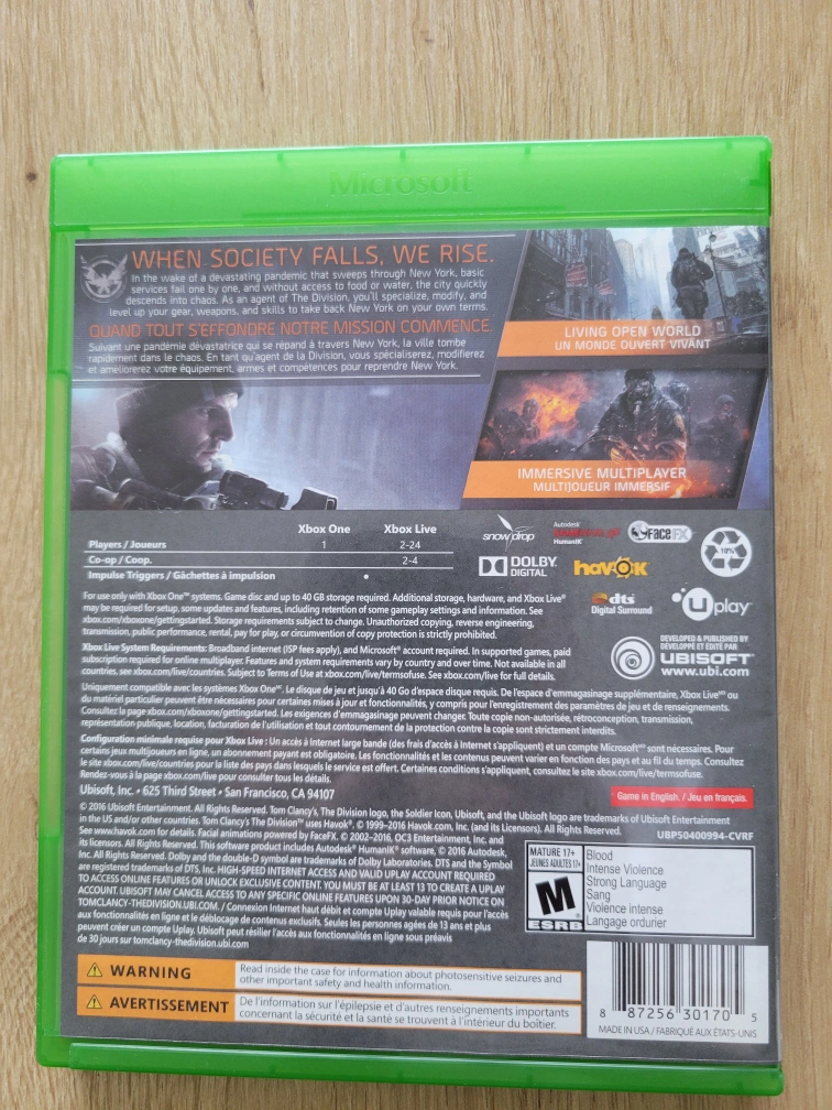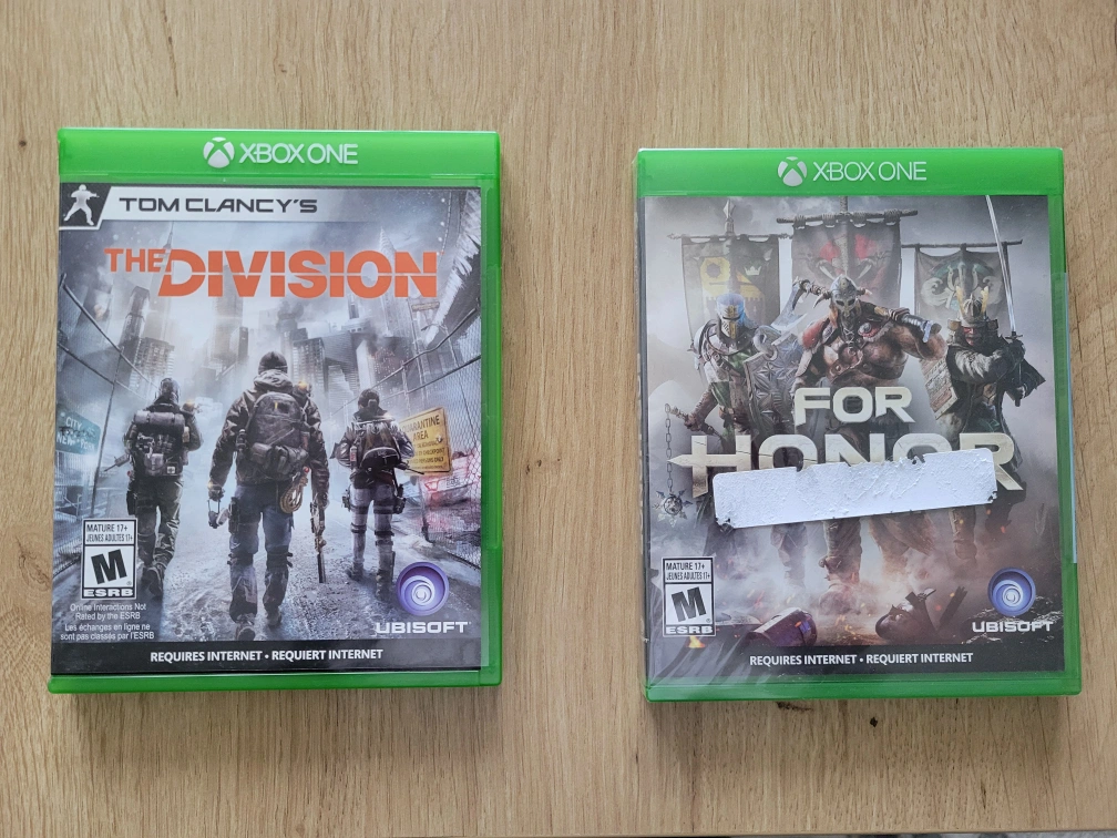 The Division and For Honor for XBox One. For Honor is BNIB, The Division has been opened but no scratches on the disc. $5 each OBO for both.