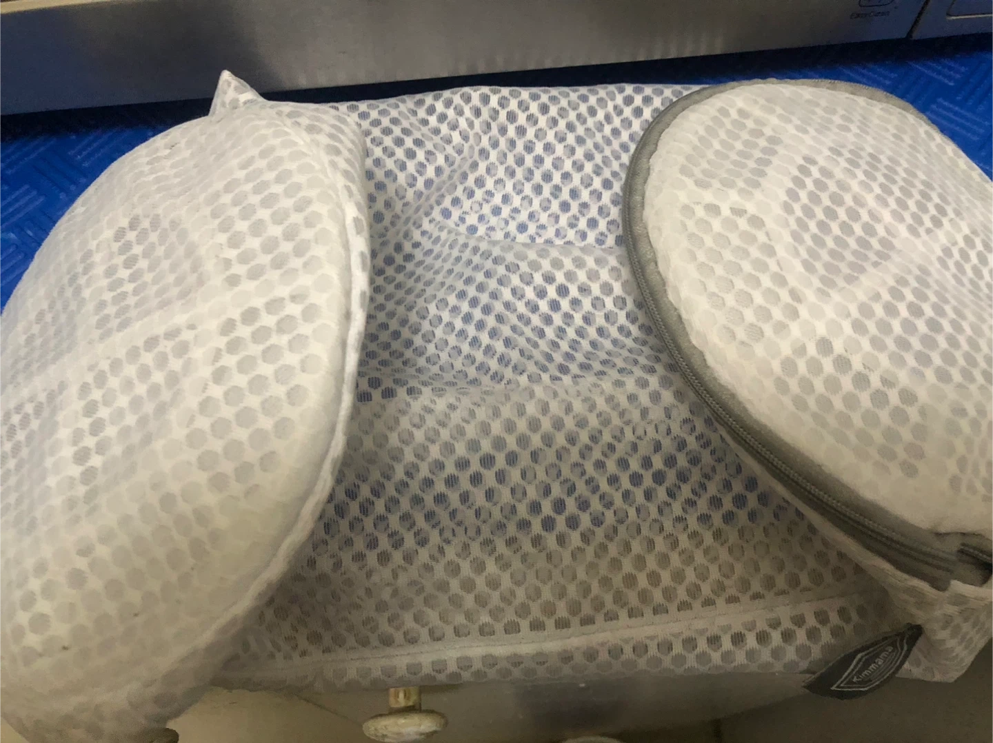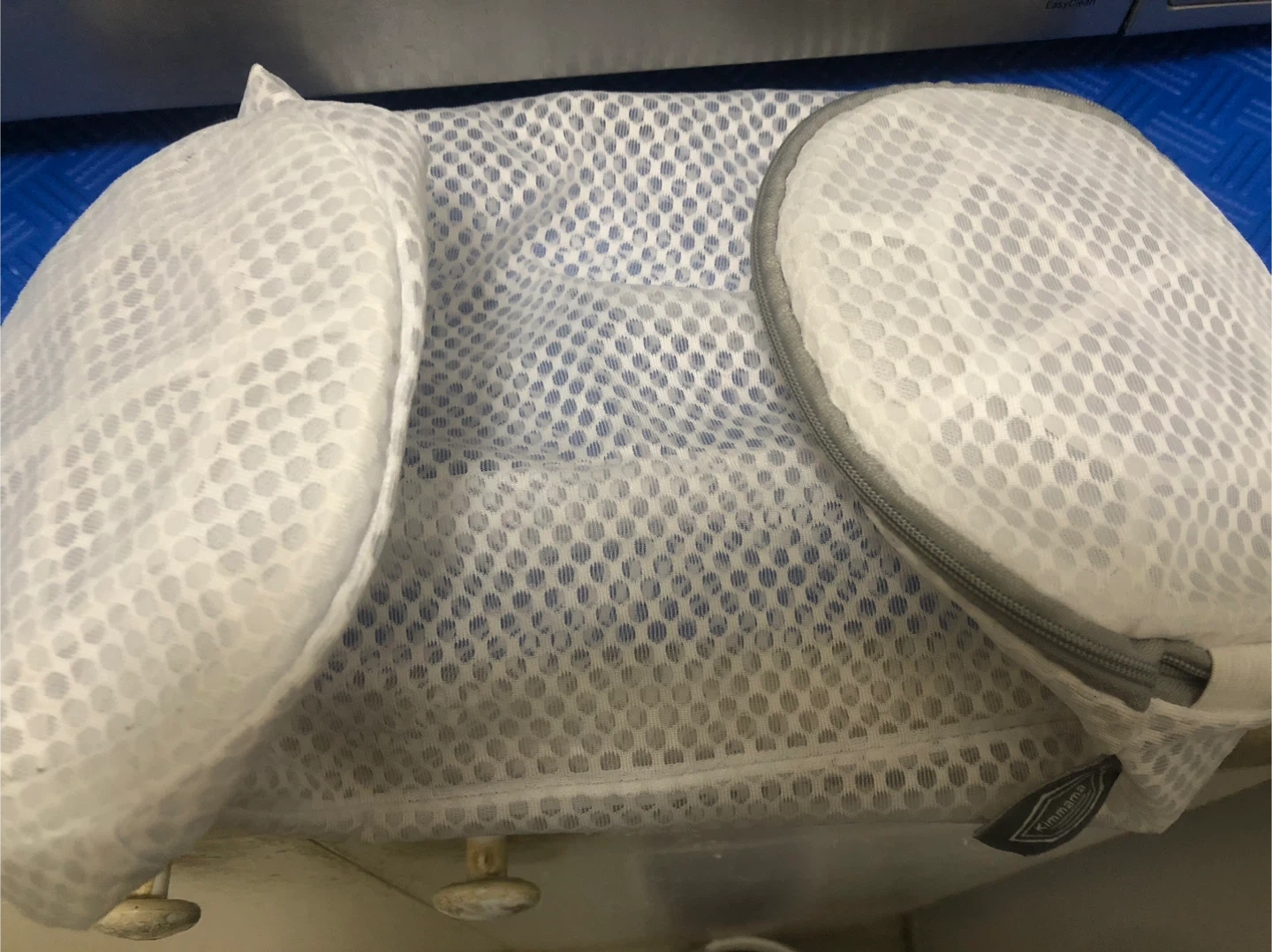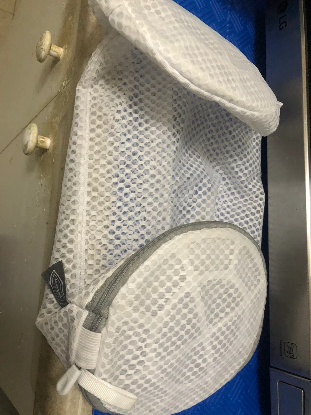 One white mesh shoe laundry bag for delicate items. Made from 100% polyester for durability. Includes a zippered closure to keep items secure. Great for protecting shoe in the wash! Pick up at Islington /401 / bergamot avenue Etobicoke.