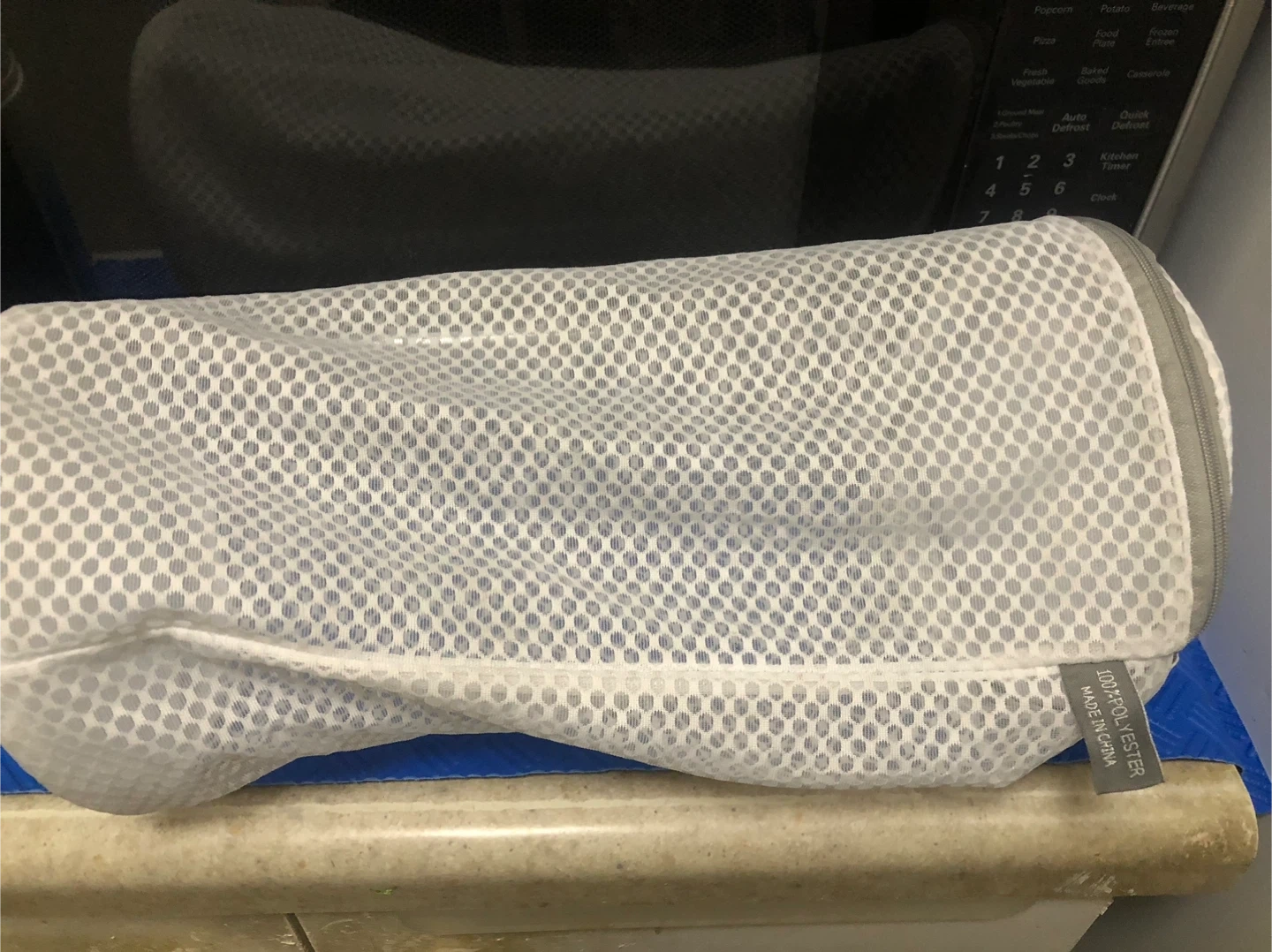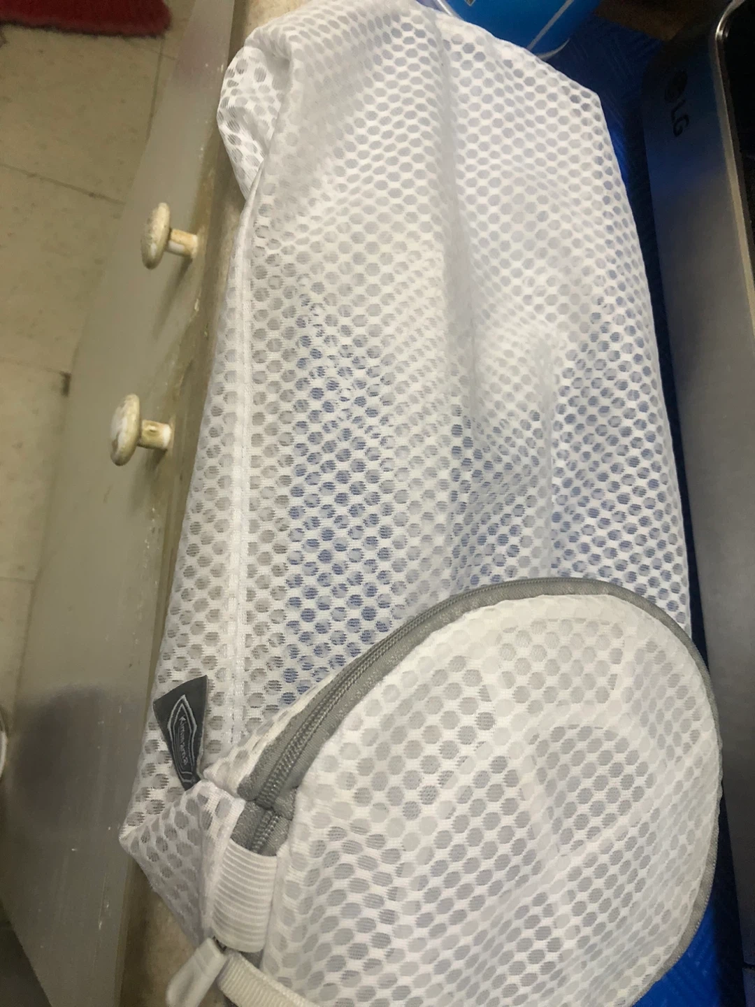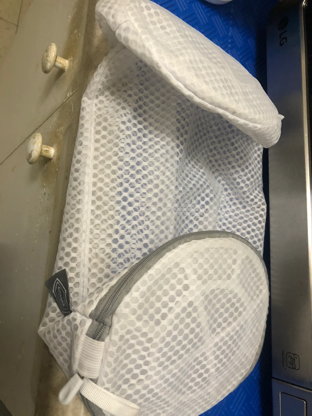 One white mesh shoe laundry bag for delicate items. Made from 100% polyester for durability. Includes a zippered closure to keep items secure. Great for protecting shoe in the wash! Pick up at Islington /401 / bergamot avenue Etobicoke.