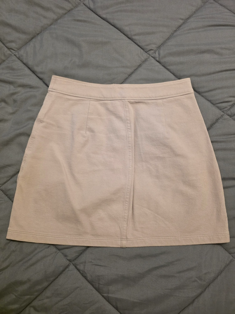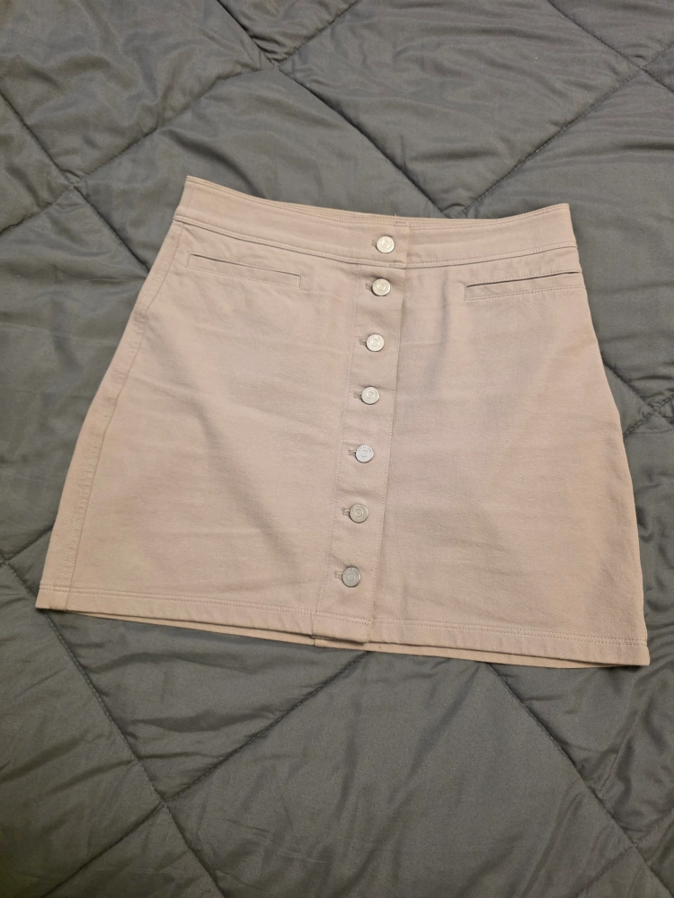 Here's a cute Wilfred Free mini skirt in a neutral colour! It's a size 6 (16 inches length). Perfect for dressing up or down!