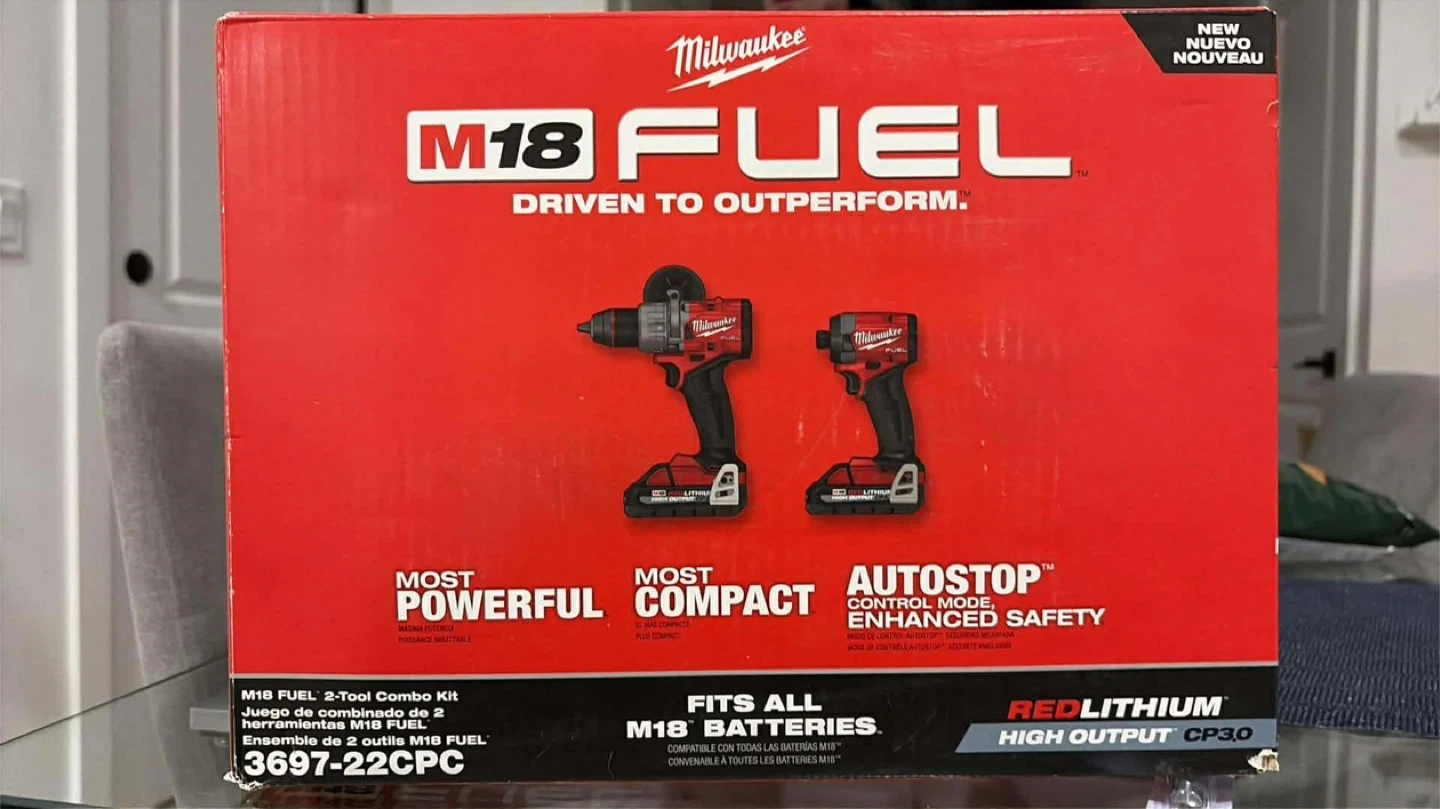 This is a Milwaukee M18 FUEL 2-Tool Combo Kit. It includes a drill and an impact driver. The kit fits all M18 batteries. It’s brand new still sealed in the box and has never been opened used or taken out of the box.