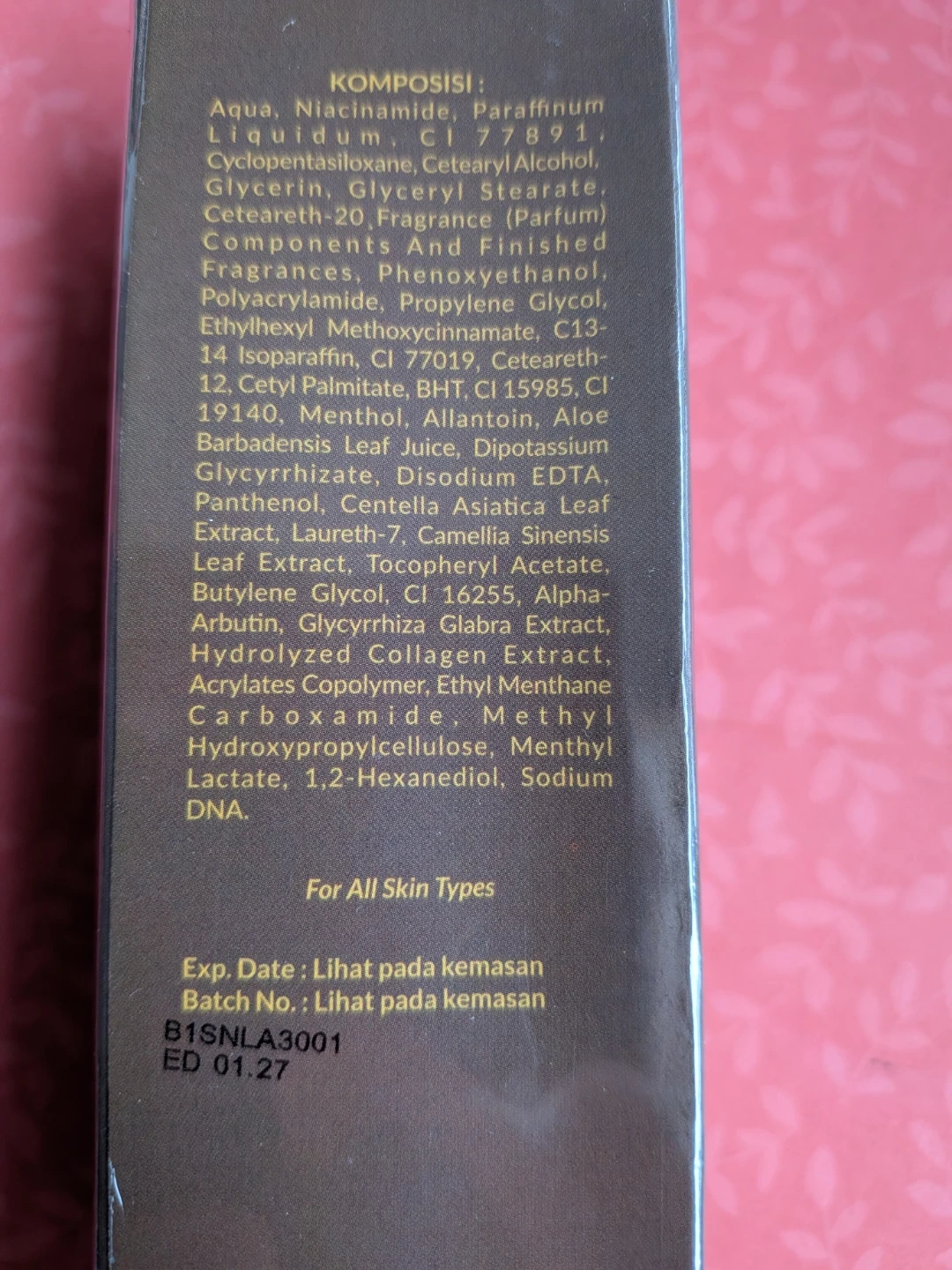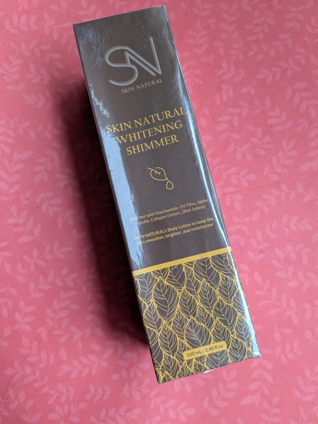 SKIN NATURAL's Whitening Shimmer Body Lotion helps keep skin smoother, brighter, and moisturized. Enriched with Niacinamide, UV Filter, Alpha Arbutin, Collagen Extract, and DNA Salmon. It comes in a 100 ml / 3.40 fl.oz bottle.