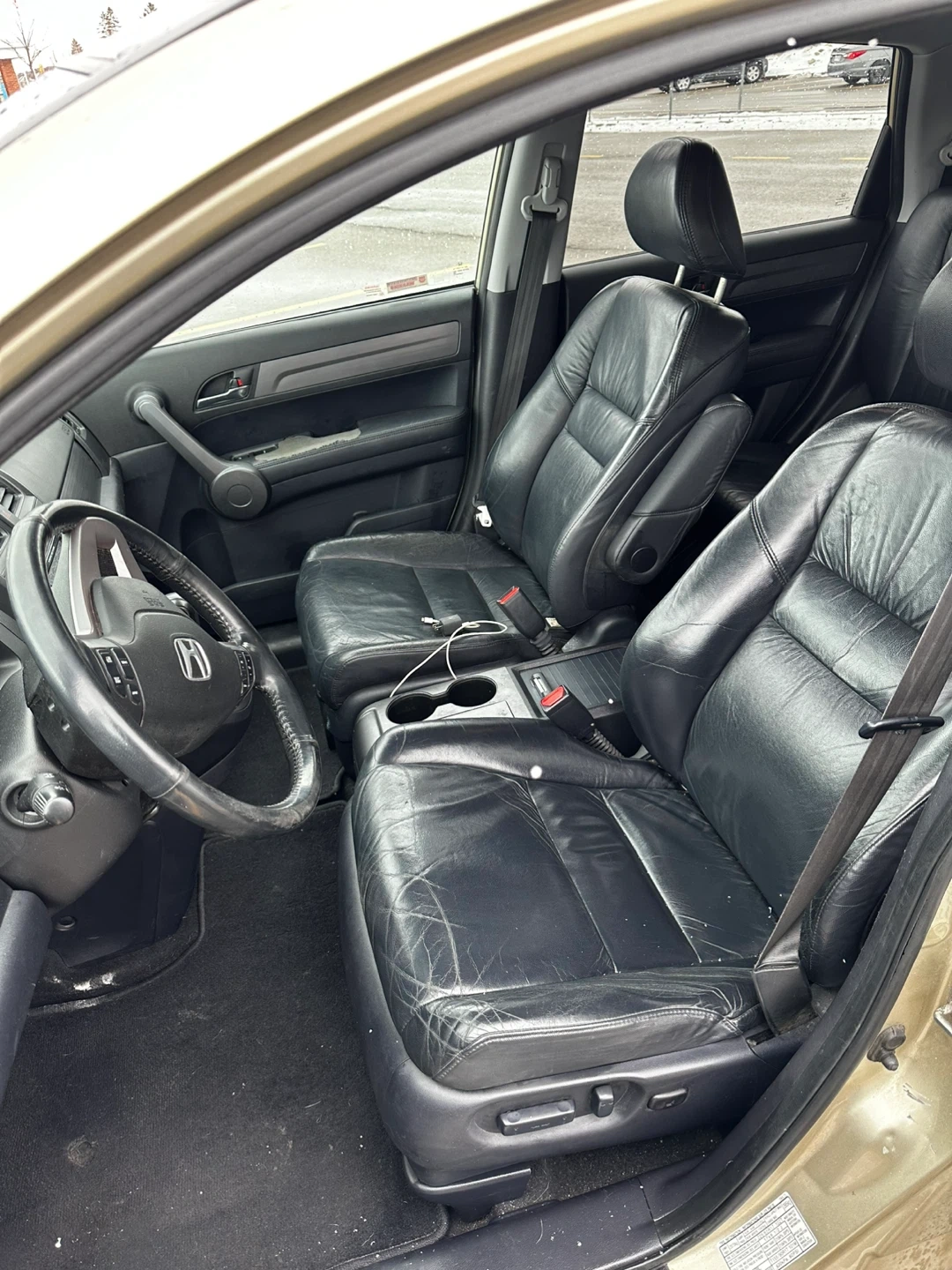 Gold Honda CR-V with leather seats and a U-Haul hitch installed. Spacious interior and trunk space. Runs well and ready for new adventures!