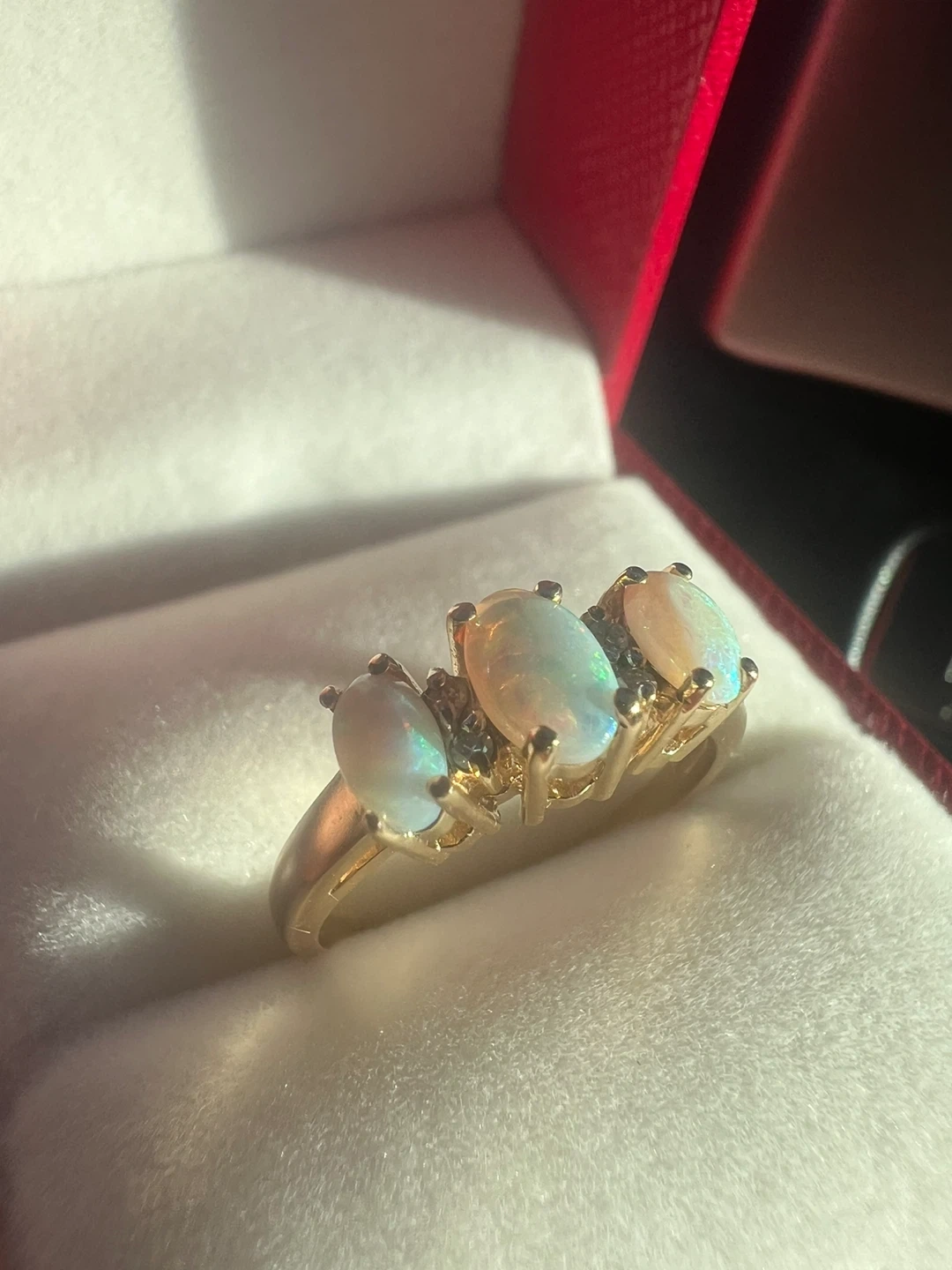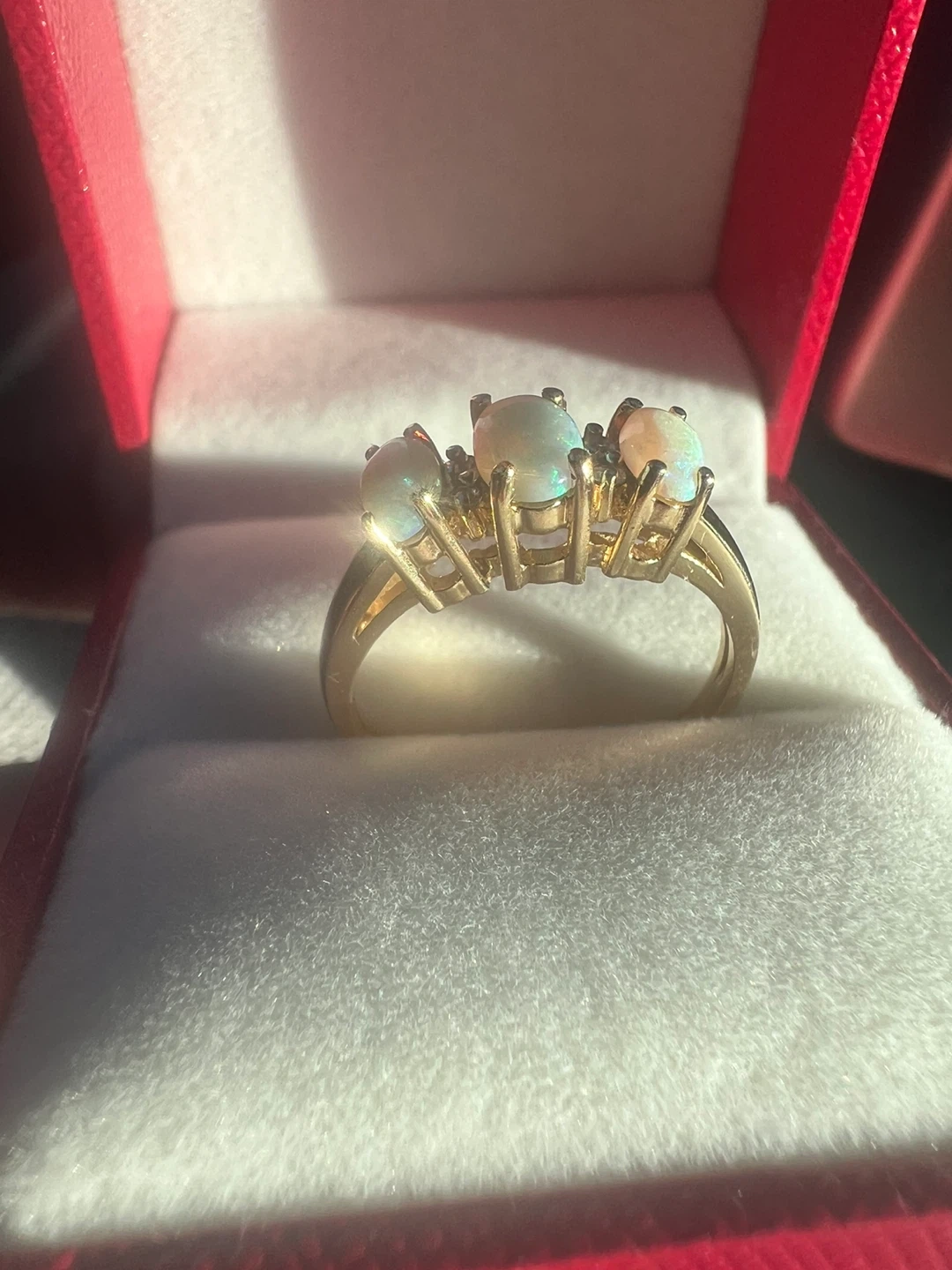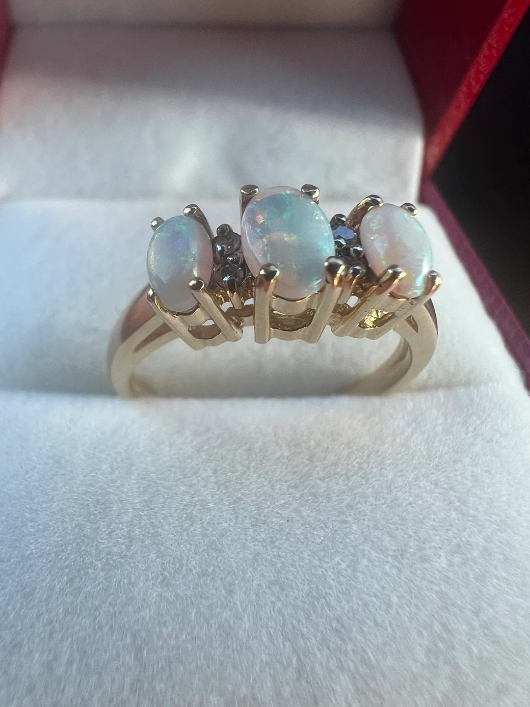 10k Yellow Gold Opal and Diamond Ring Size 6 1/4