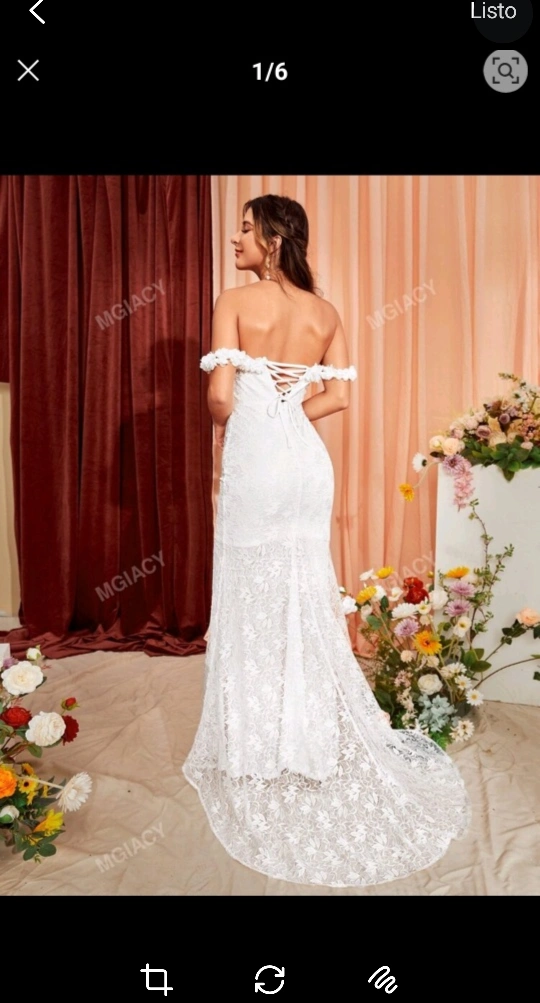 Selling a beautiful white lace off-shoulder maxi dress from MGICY. It's perfect for a special occasion or just feeling fancy! The dress features delicate lace detailing and an elegant off-shoulder design. Size M