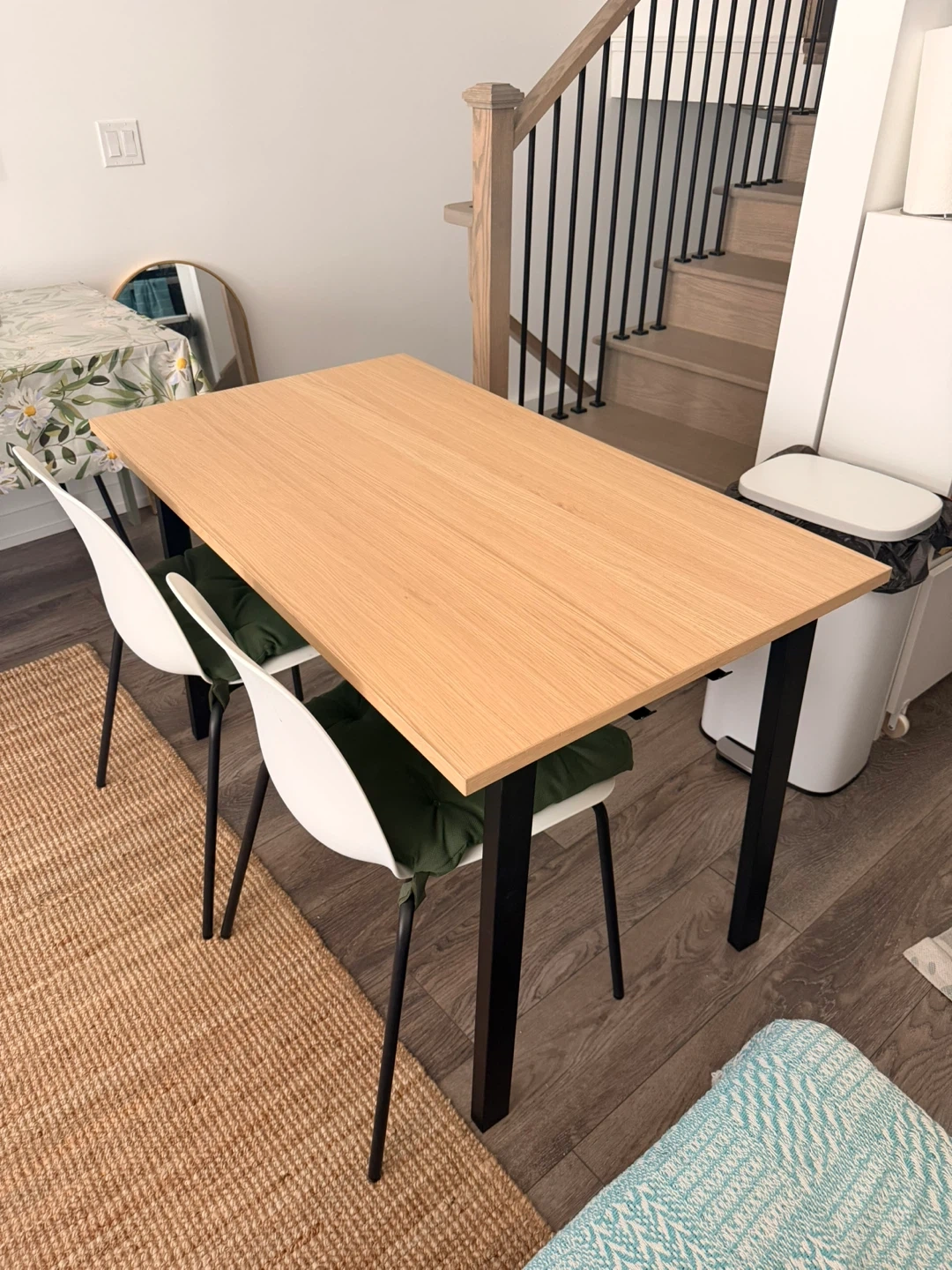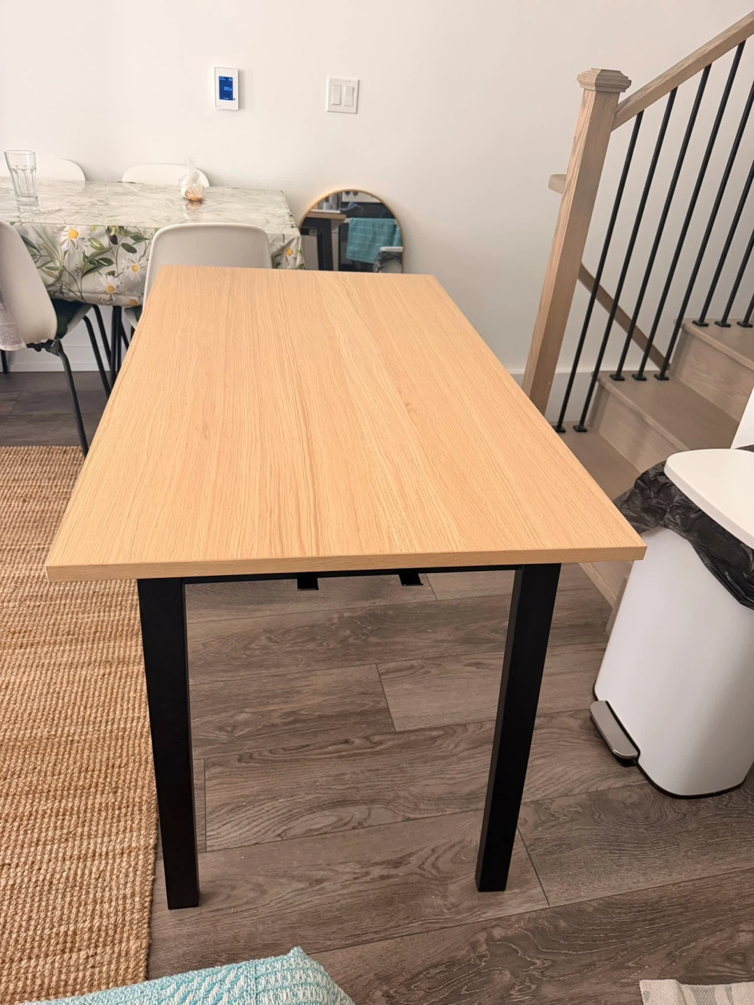 Brand new oak veneer/black table ($250 at Ikea)