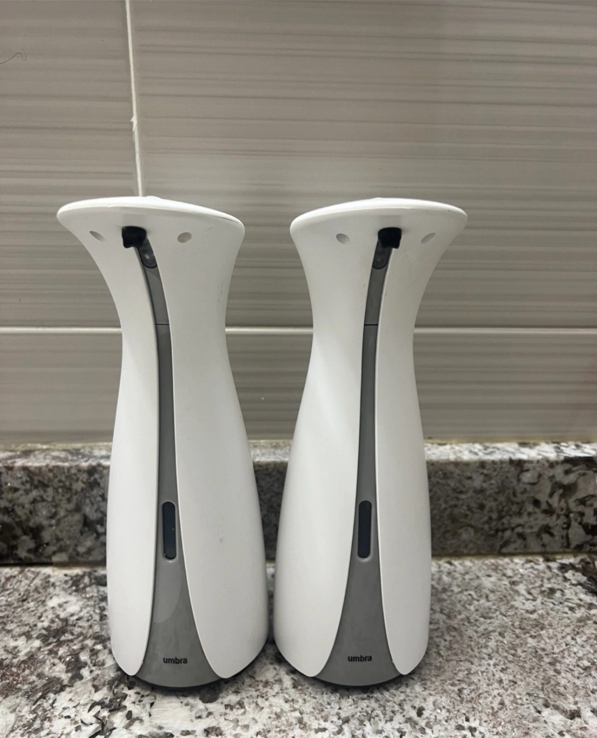 Selling two Umbra Otto automatic soap dispensers. They're in great shape and will add a touch of modern convenience to your bathroom or kitchen! They are white and grey.