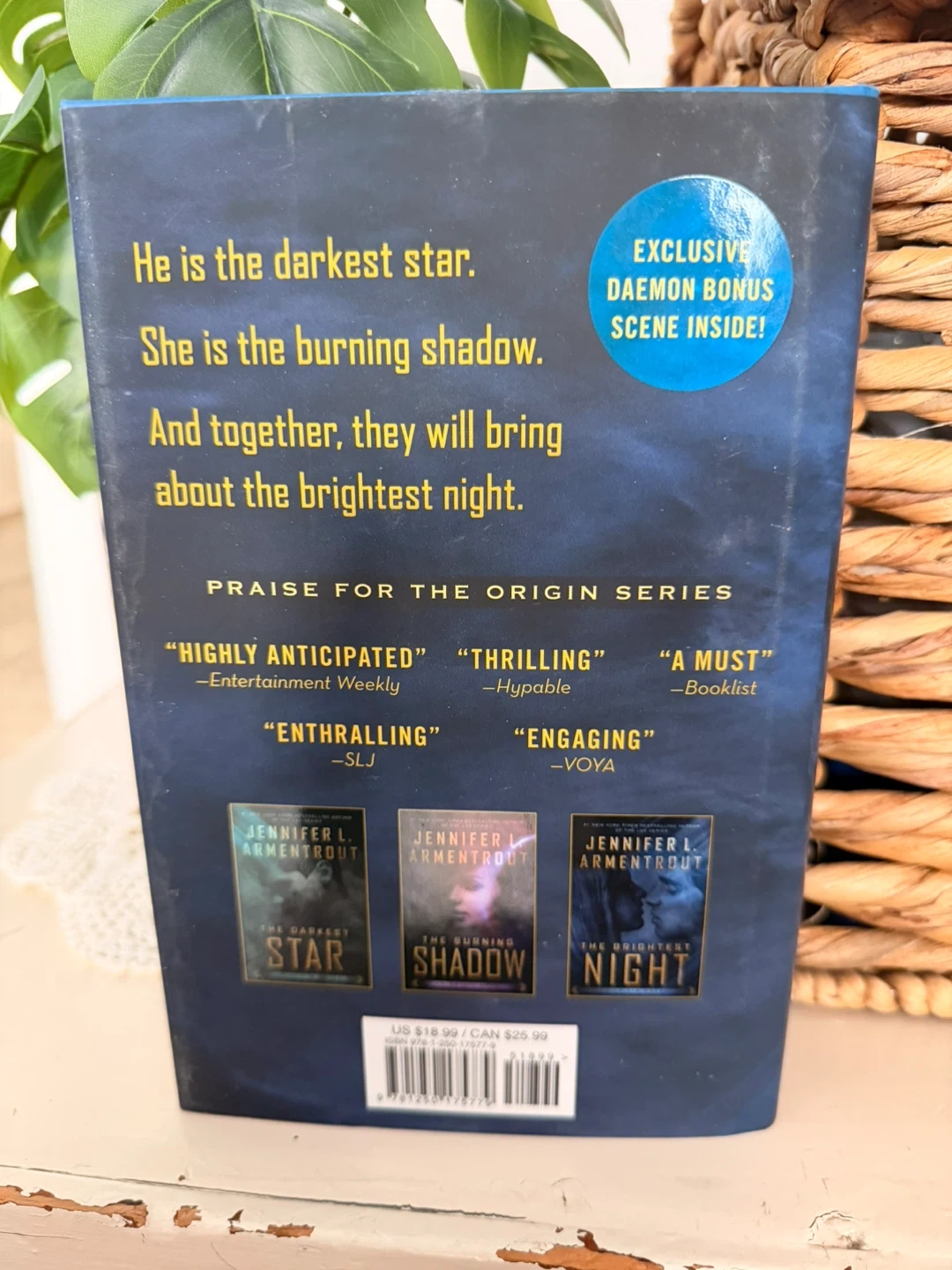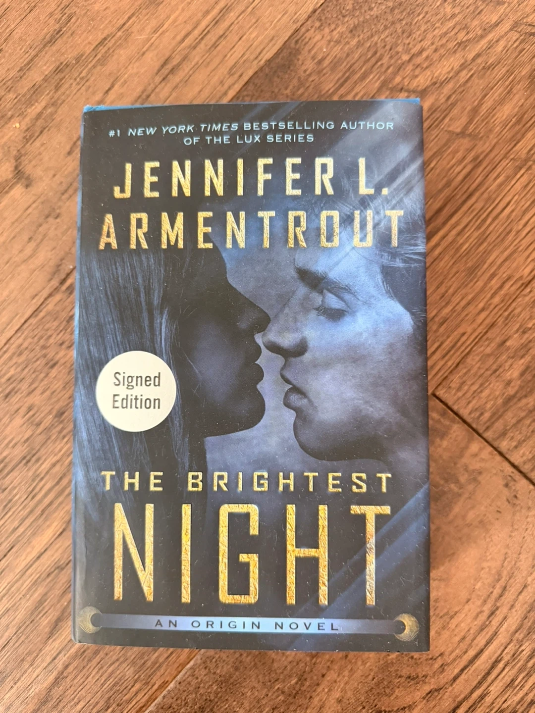 This is a signed edition of "The Brightest Night," an Origin novel by Jennifer L. Armentrout. It's part of a thrilling series praised by multiple publications. This book was part of a New York Times bestselling author's collection.