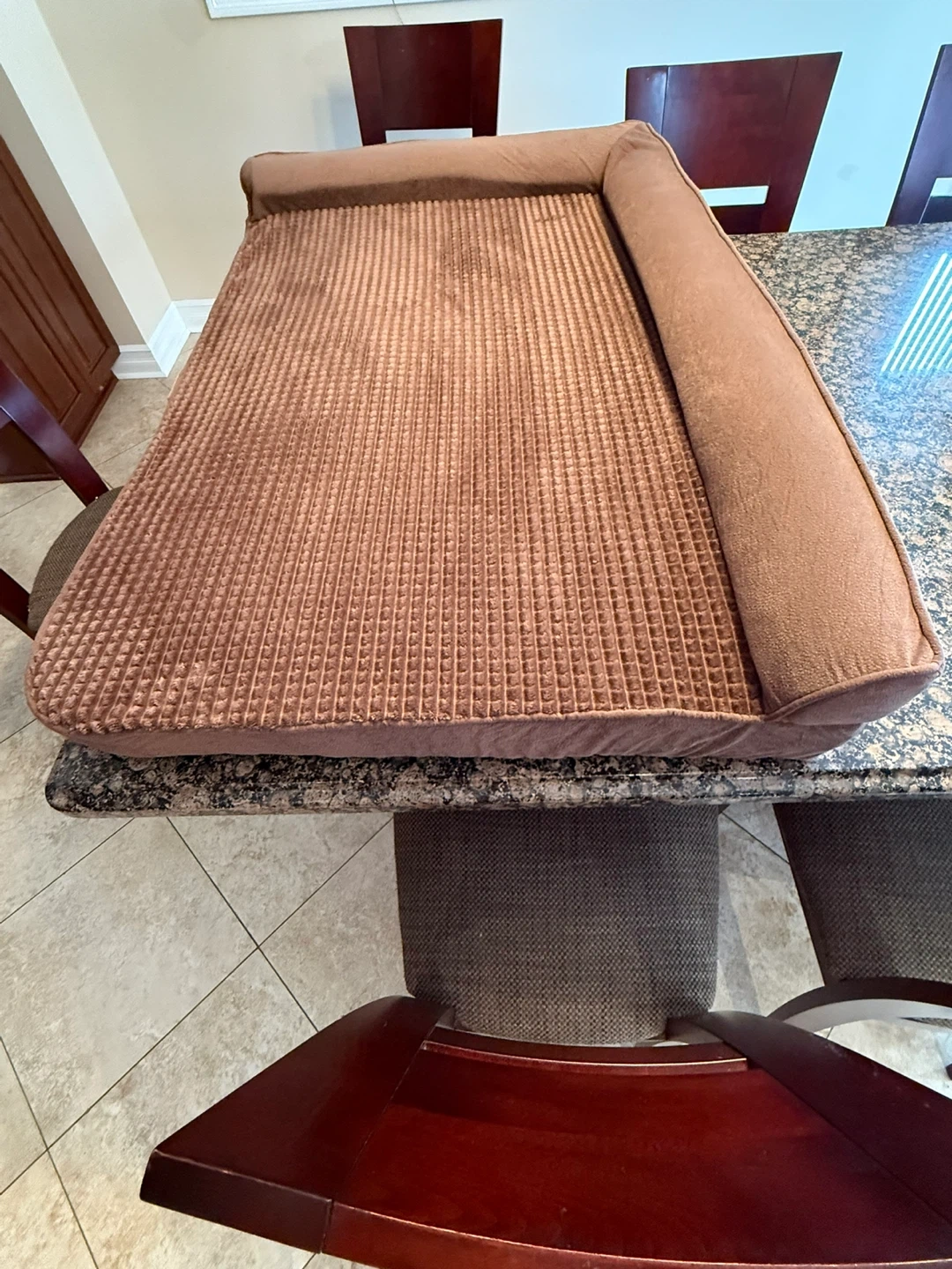 Selling a COZY KISS XL dog bed in brown. It's NEW and ready for a furry friend to enjoy! It's a comfy spot for your dog to relax and unwind after a long day of playing fetch.