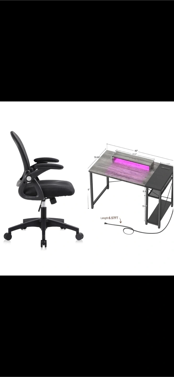 Selling a brand new office setup bundle - includes a modern computer desk with USB ports + LED lights AND a breathable mesh office chair with flip-up arms. Perfect for your home office, bedroom, or gaming space.
