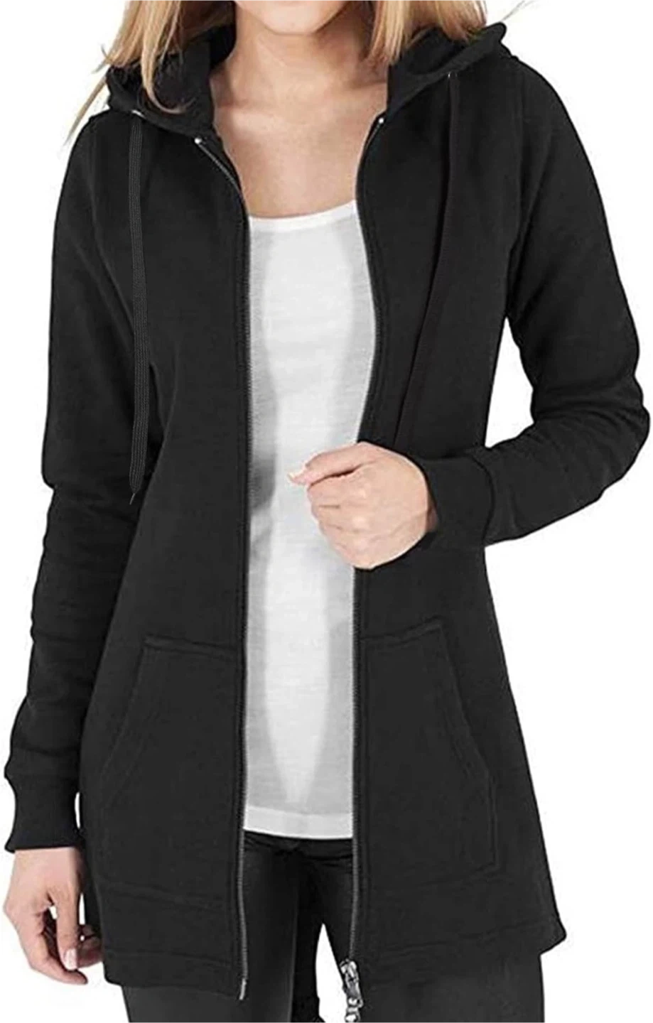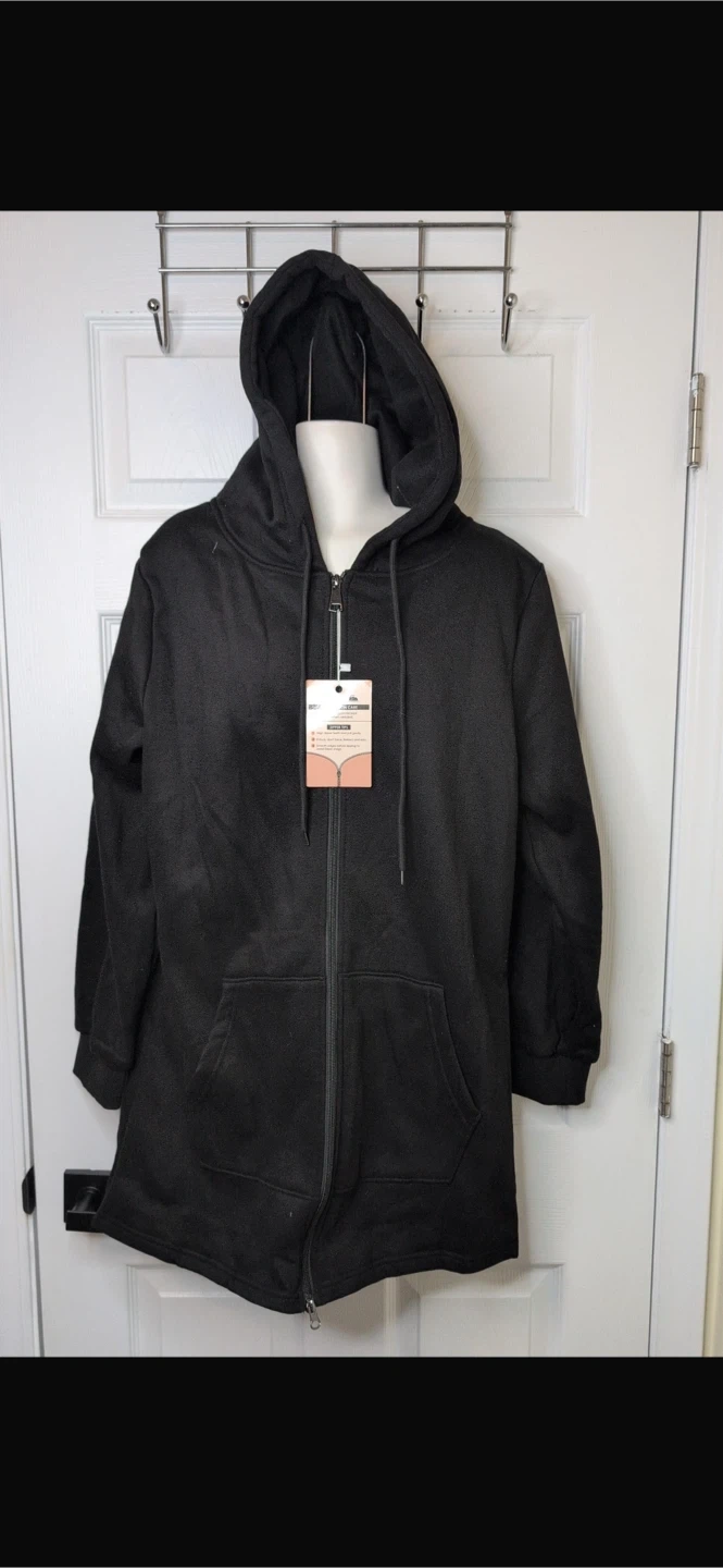 NEW! Long Black Zip-Up Hoodie With Pockets