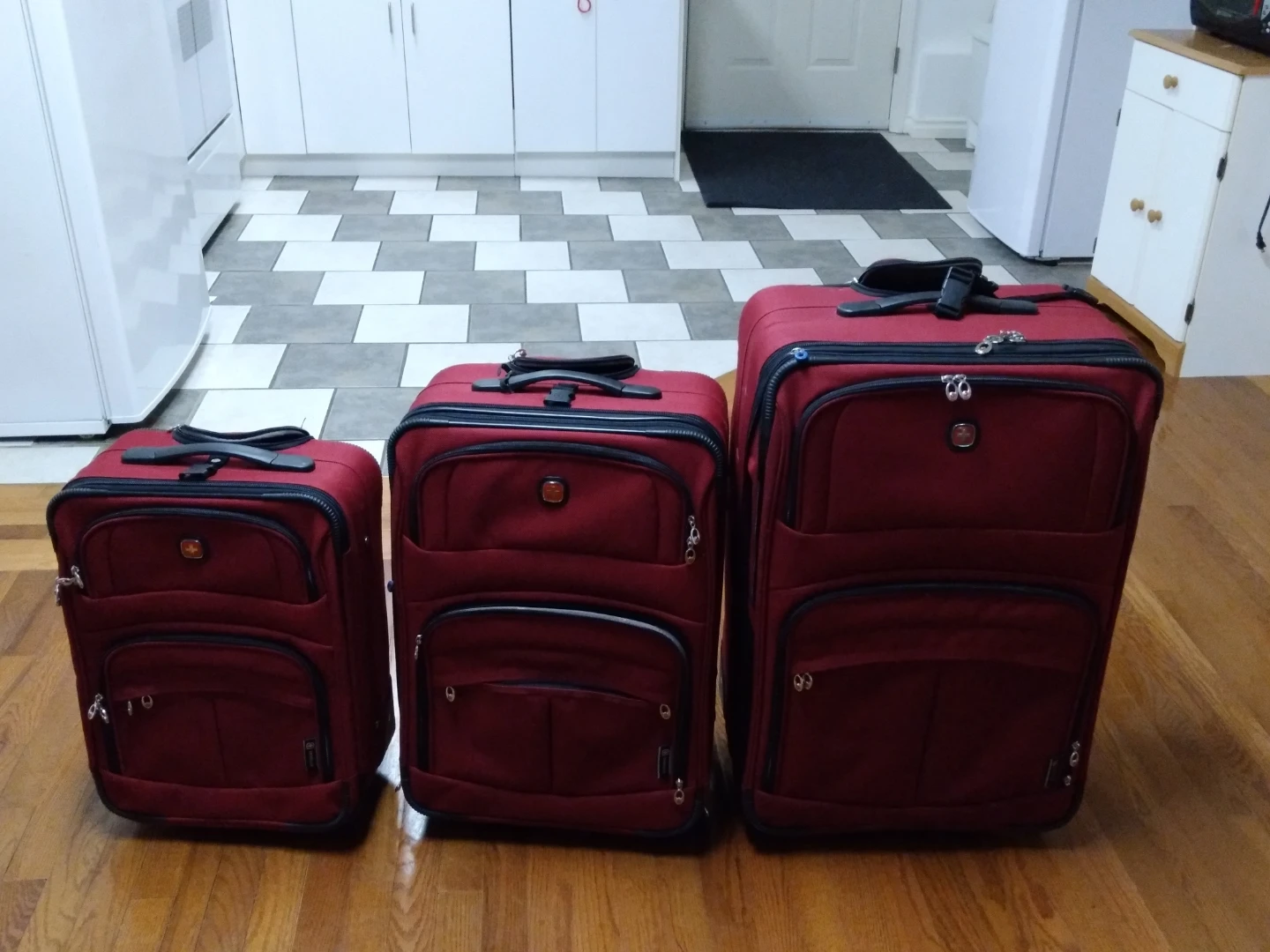 Selling a Swiss Gear 3-piece luggage set in red. Great for all your travel needs! Includes three different sizes to accommodate various trips. All pieces are in good condition and ready for your next adventure. Some small scuffs on bottom of large suitcase.